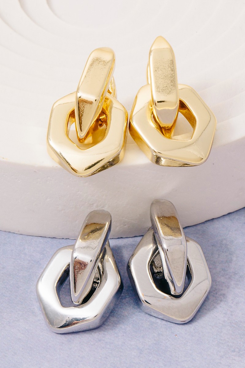 • This pair of hoop earrings showcases a unique gold dipped links hinge style. Celebrate individual style with this versatile, eye-catching addition.