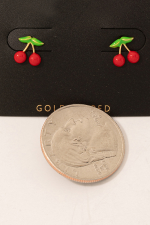 - This pair of stud earrings displays a fashionable gold dipped mini cherry style. Delight in the intricate details that make this pair of stud earrings an essential element in expressing your fashion identity.