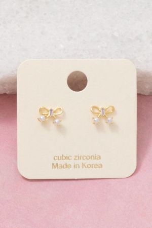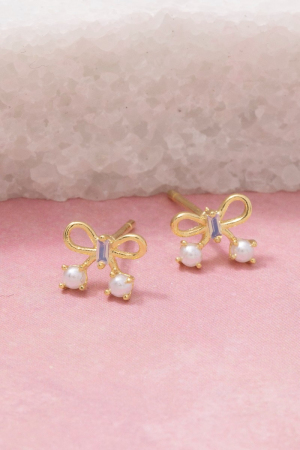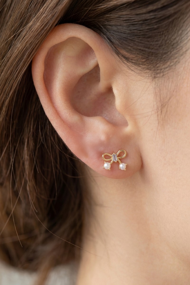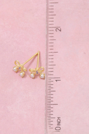 - This pair of stud earrings showcases a unique gold dipped mini ribbon bow style. Explore a blend of classic charm and contemporary flair.