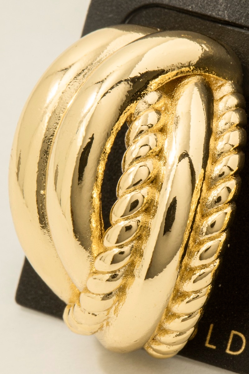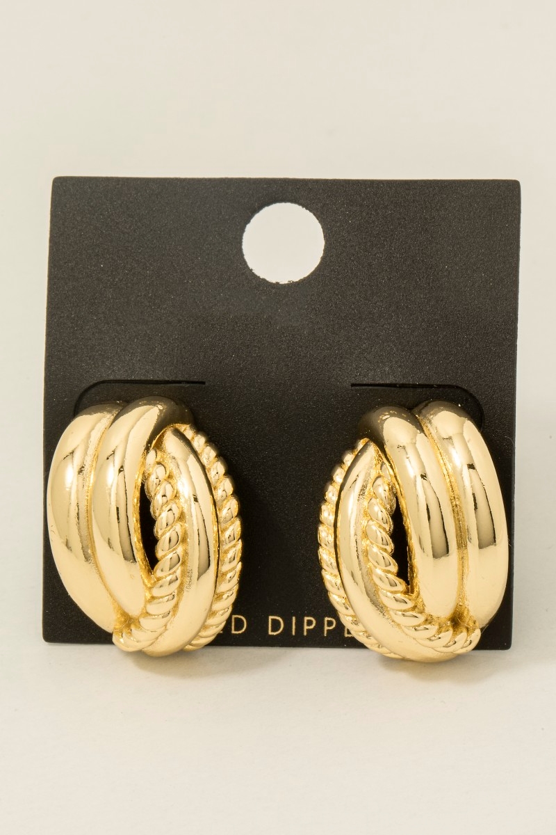 - This pair of hoop earrings displays a vibrant gold dipped mixed layered style. Elevate your ensemble with this pair of hoop earrings that effortlessly captures the essence of refined fashion.