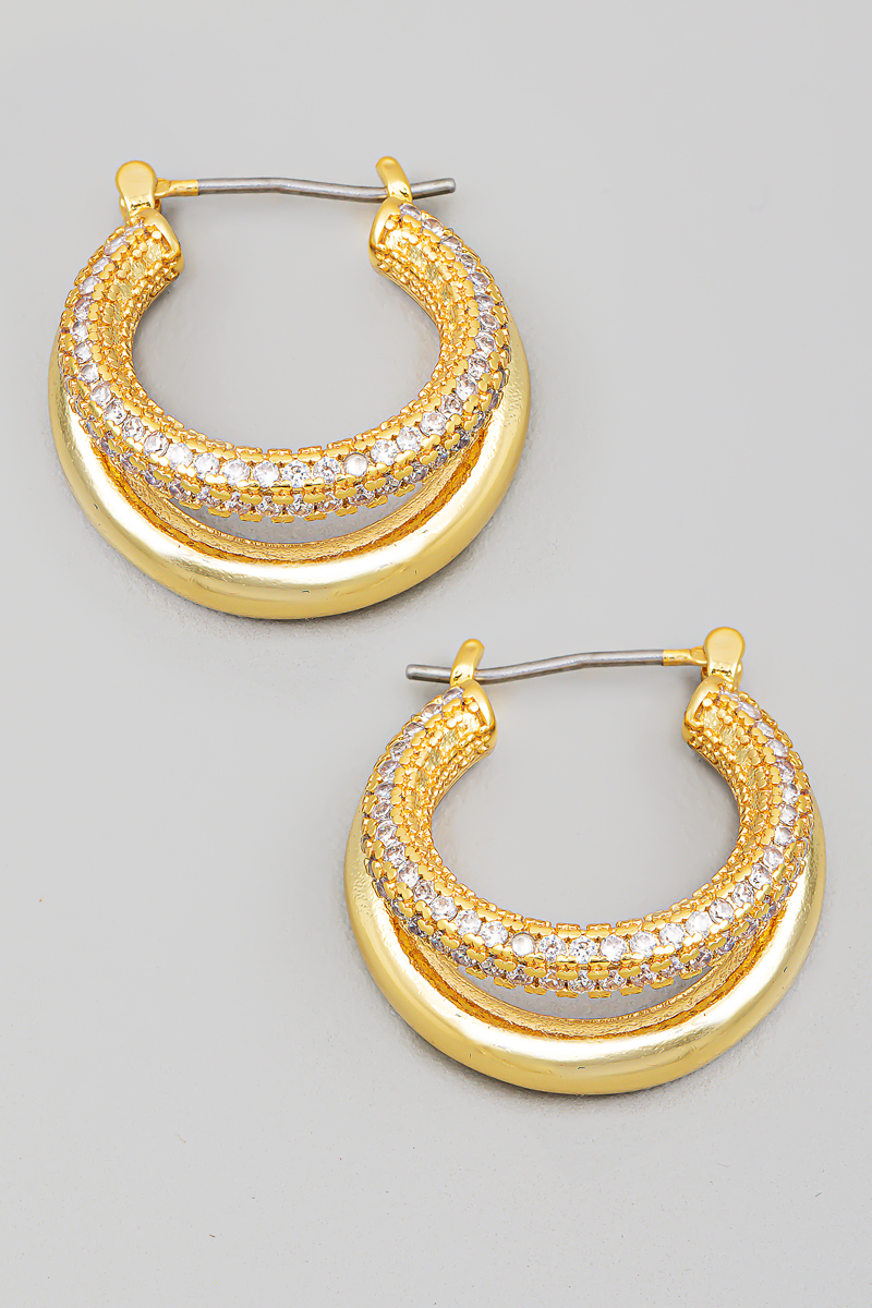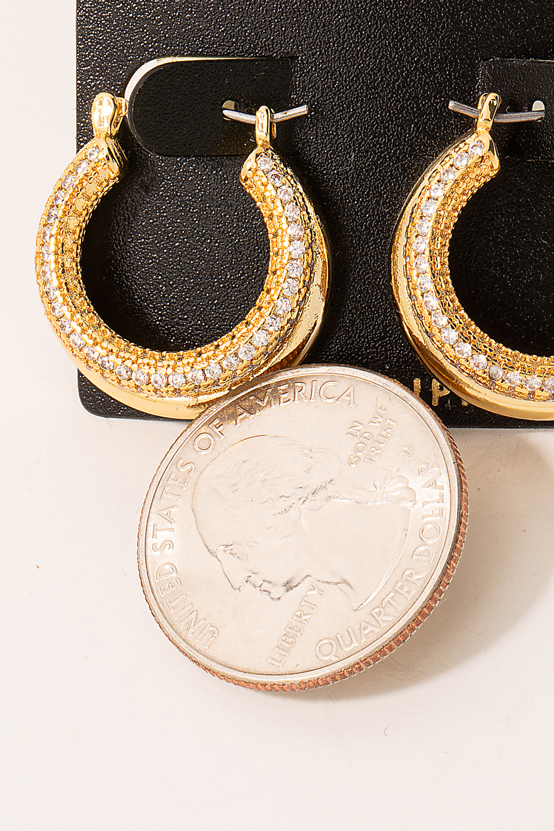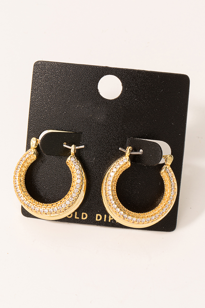 Gold Dipped Cz Stud End Hinge Hoop Earrings