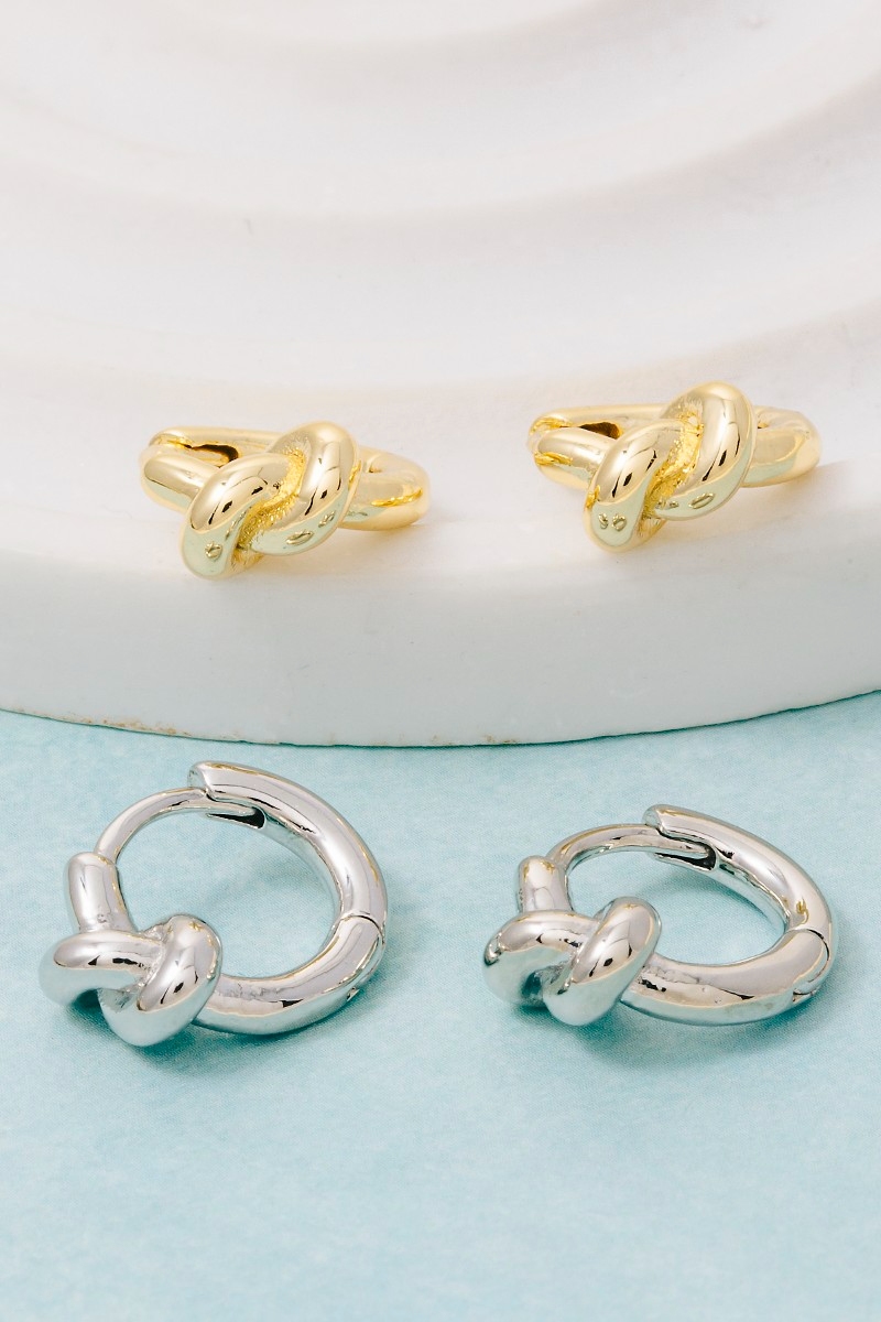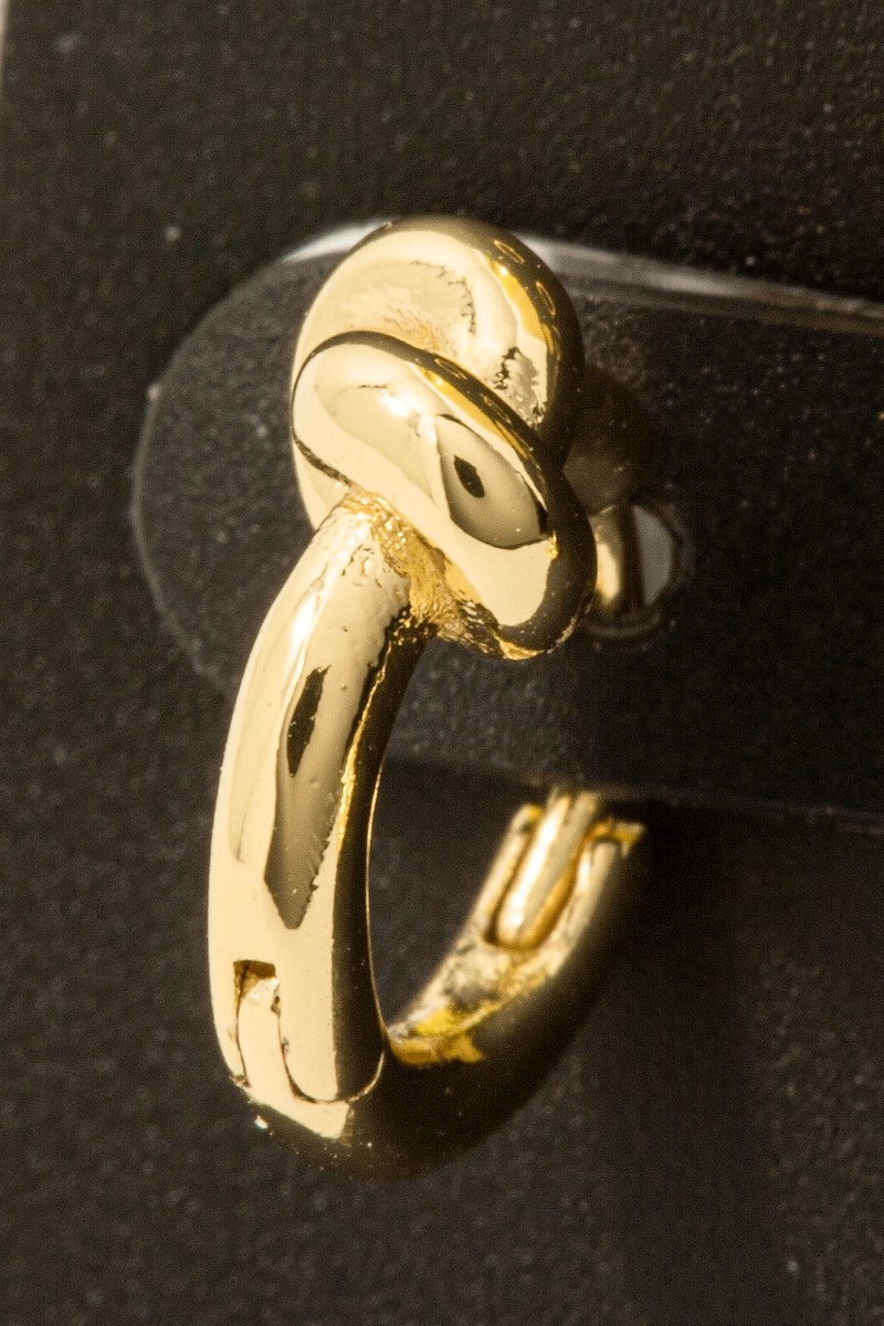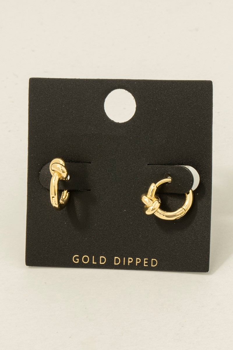 - This pair of hoop earrings showcases a unique gold dipped small knot hinge style. Celebrate the art of accessorizing with this piece that effortlessly encapsulates modern trends.