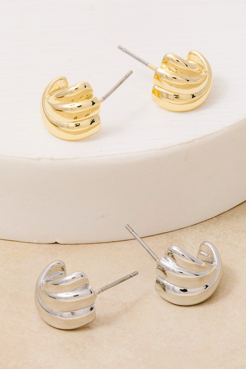 - This pair of hoop earrings adds a modern gold dipped staggered layered style. Experience a subtle blend of modernity and classic charm as this pair of hoop earrings effortlessly adorns your ensemble.