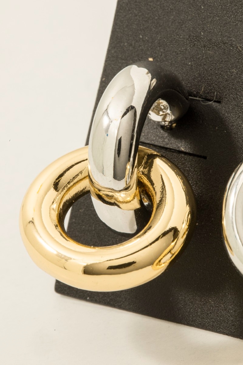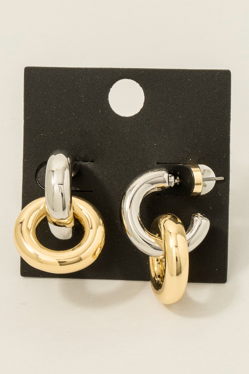 - This pair of hoop earrings showcases a unique gold dipped two tone double style. Discover the perfect balance of functionality and fashion.