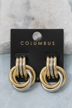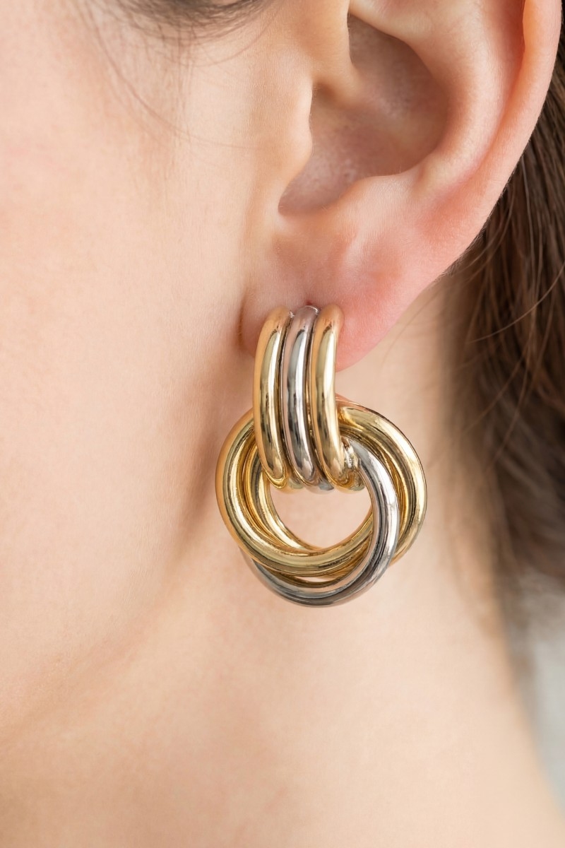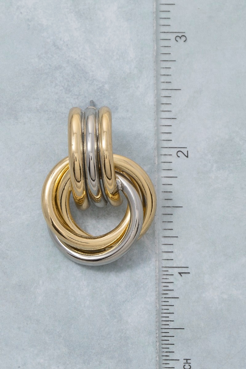 • This pair of dangle earrings brings a stunning gold dipped two tone knotted hoops style. Savor the craftsmanship that goes beyond the ordinary, as this pair of dangle earrings effortlessly captivates attention.