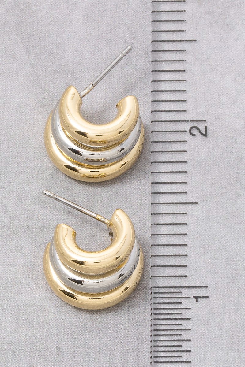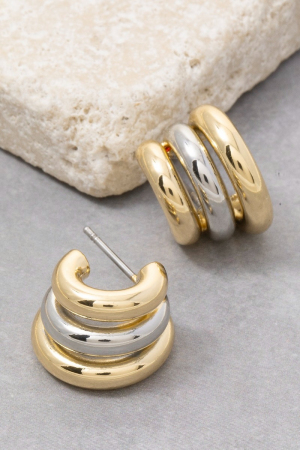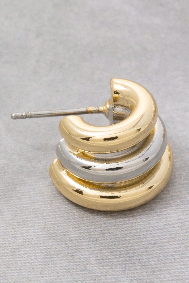 • This pair of hoop earrings showcases a timeless gold dipped two tone layered style. Unveil modern elegance with this subtly intricate pair of hoop earrings.