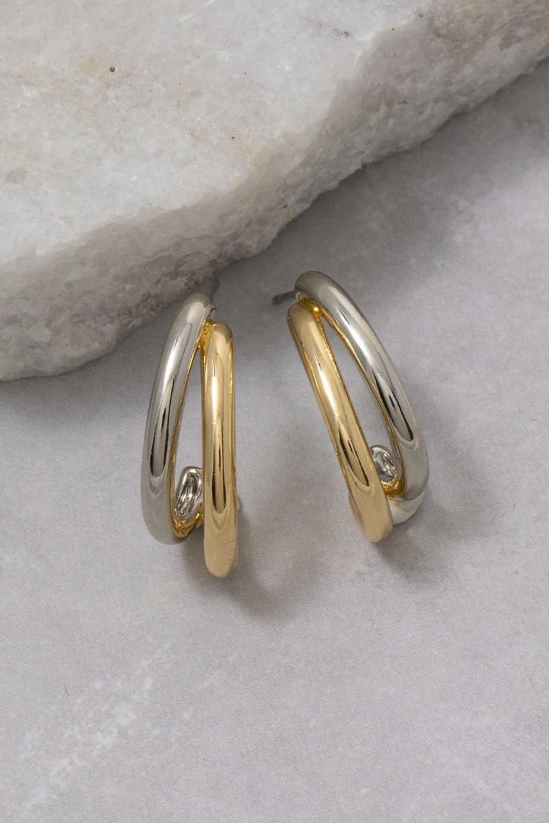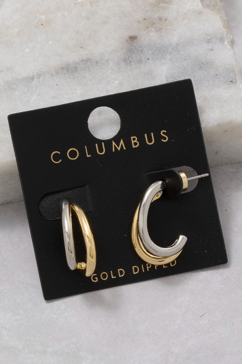 - This pair of hoop earrings brings a luxurious gold dipped two tone layered style. Witness the perfect fusion of style and functionality as this pair of hoop earrings effortlessly complements your lifestyle.