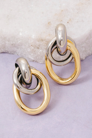 • this pair of columbus jewelry earrings showcases a timeless gold dipped two tone oval hoop door knocker style. Delight in the nuanced details that make this pair of columbus jewelry earrings a testament to fine design and impeccable taste.