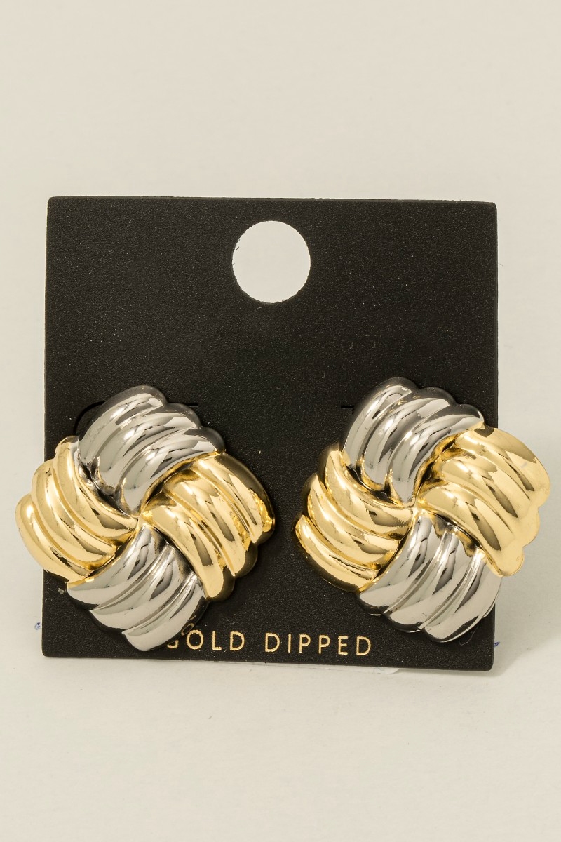 • this pair of columbus jewelry stud earrings introduces a unique gold dipped two tone square weave style. Delight in the intricate details that make this pair of columbus jewelry stud earrings an essential element in expressing your fashion identity.