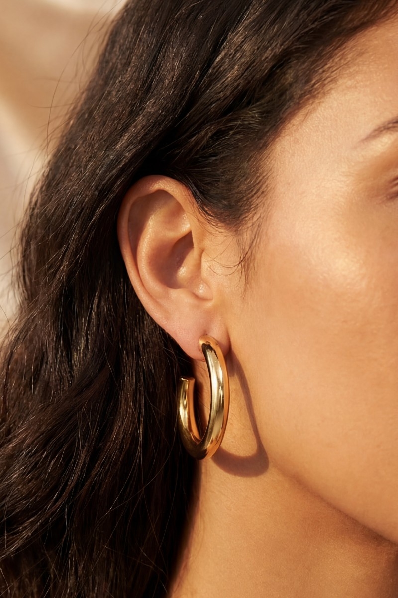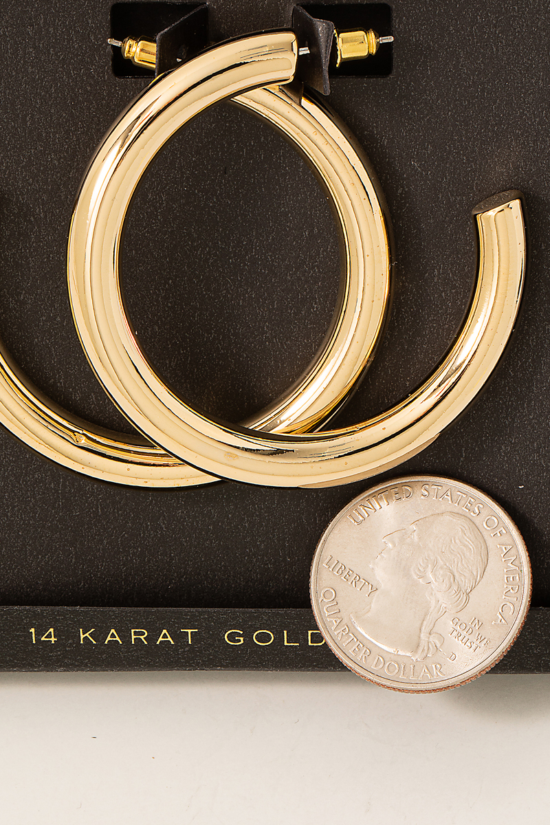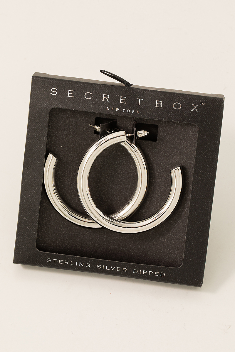- This pair of hoop earrings features a fashionable secret box 50mm gold dipped hoop earrings style. Explore a refined sense of style with this accessory, seamlessly elevating the chic factor of your look.