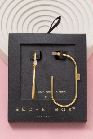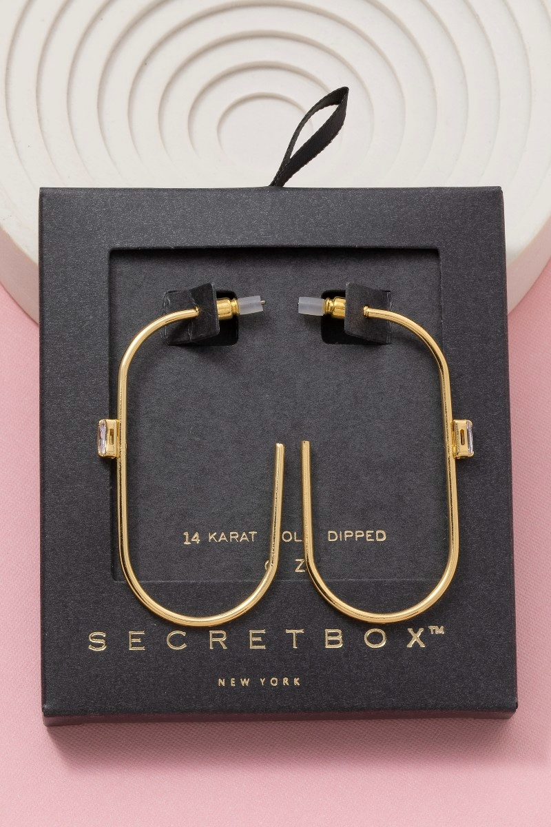 - This pair of hoop earrings introduces a stunning secret box gold dipped cubic zirconia open oval style. Savor the allure of detailed craftsmanship in this exquisite pair of hoop earrings.