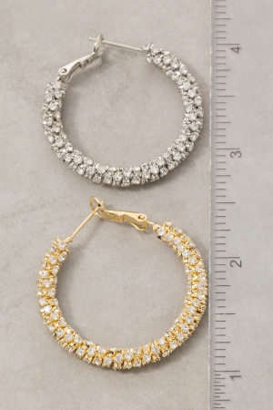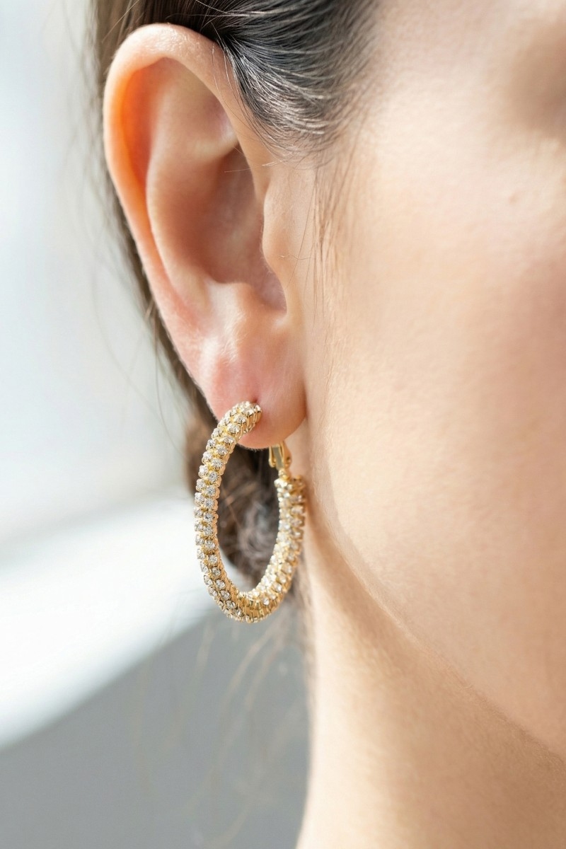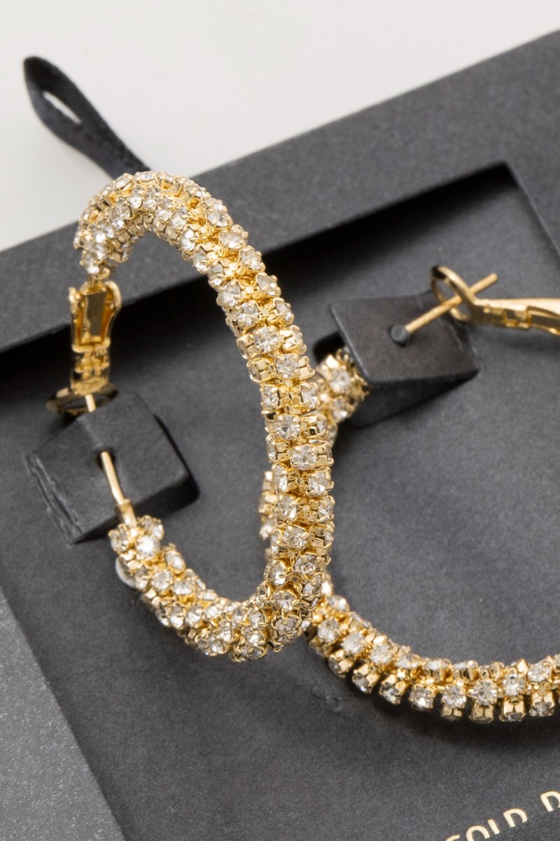 • This pair of hoop earrings showcases a timeless secret box gold dipped cubic zirconia pave style. Embark on a journey of sartorial refinement as this pair of hoop earrings effortlessly complements your fashion sense.