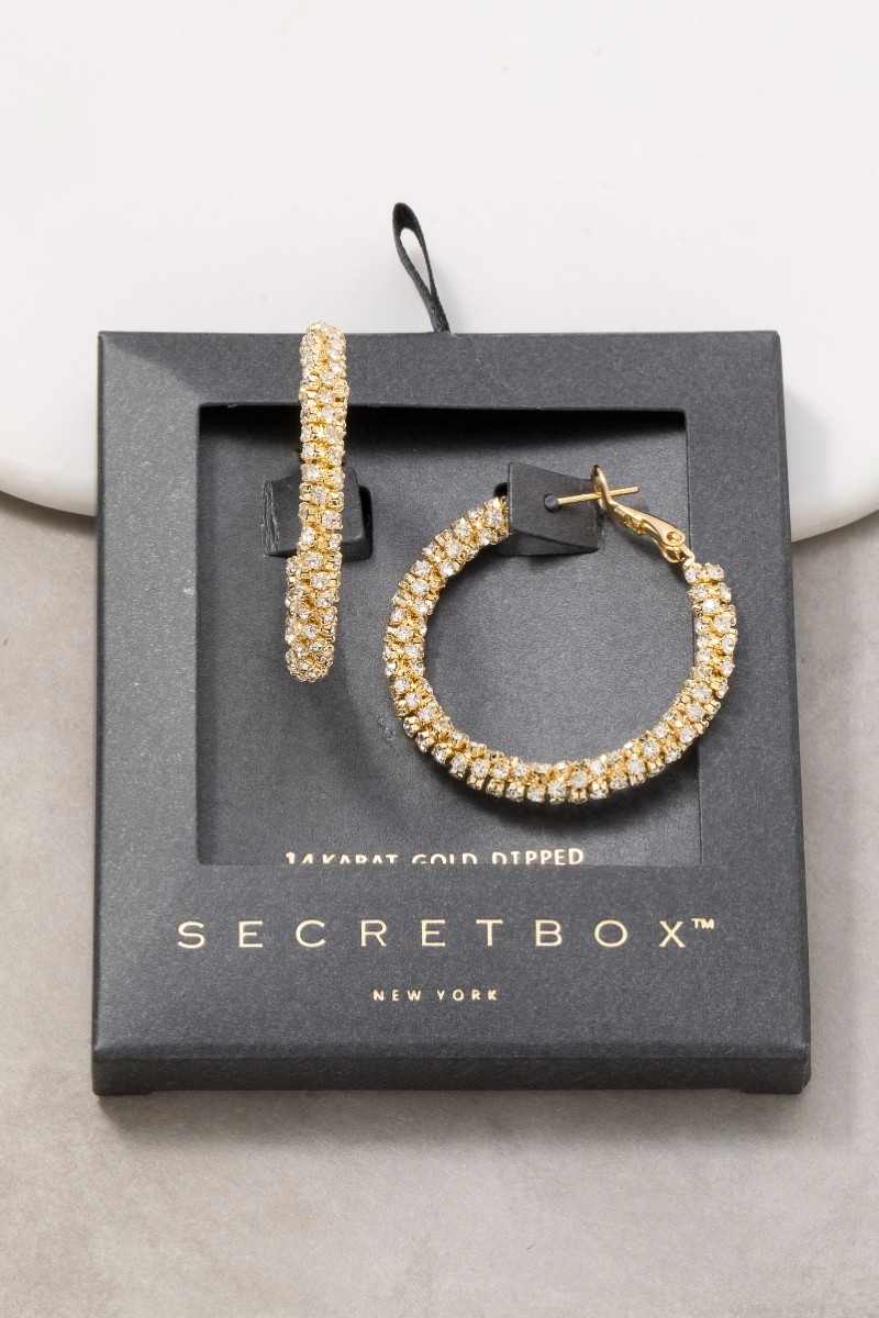 Secret Box Gold Dipped Cz Round Hoop Earrings