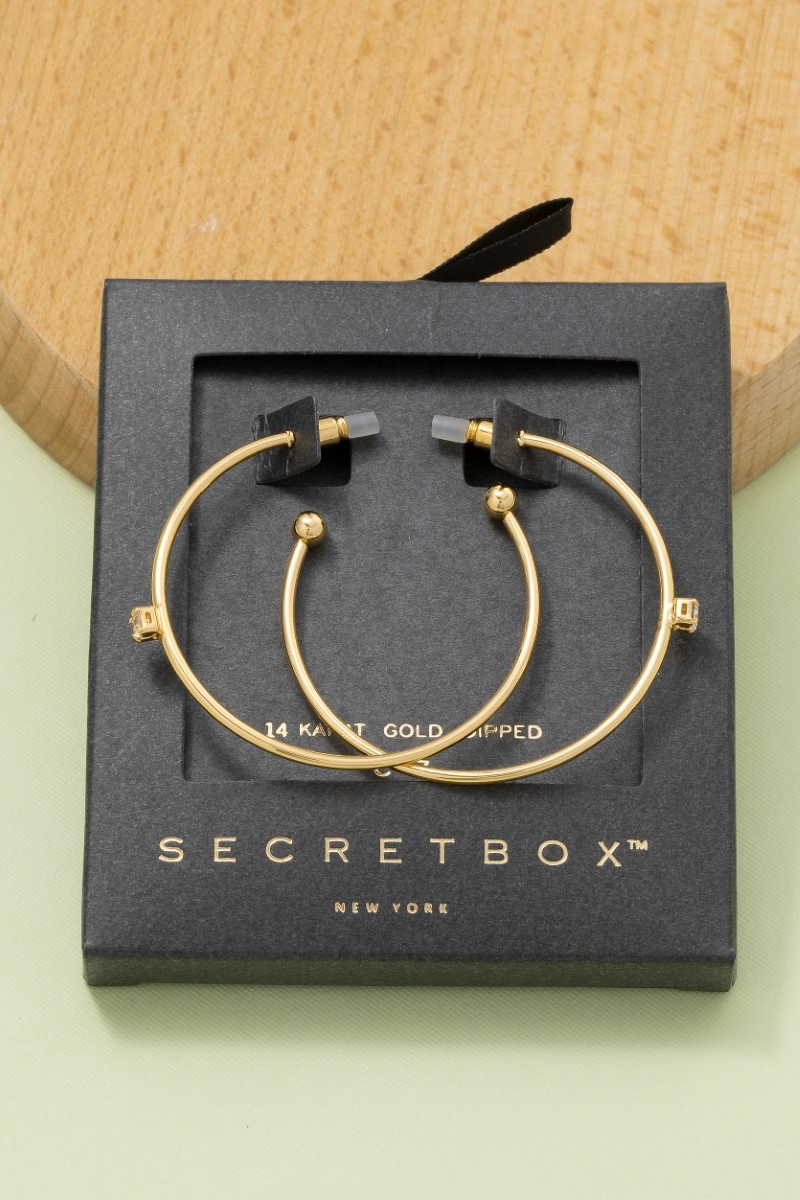 Secret Box Gold Dipped Cz Thin Hoop Earrings