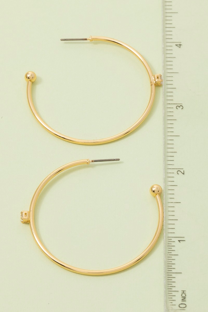 Gold Dipped Cz Stud End Hinge Hoop Earrings