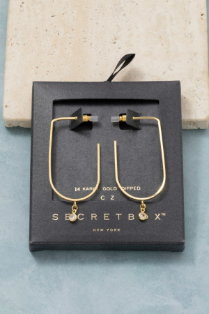 - This pair of hoop earrings displays a vibrant secret box gold dipped cubic zirconia thin style. Immerse yourself in fashion finesse with this statement pair of hoop earrings.