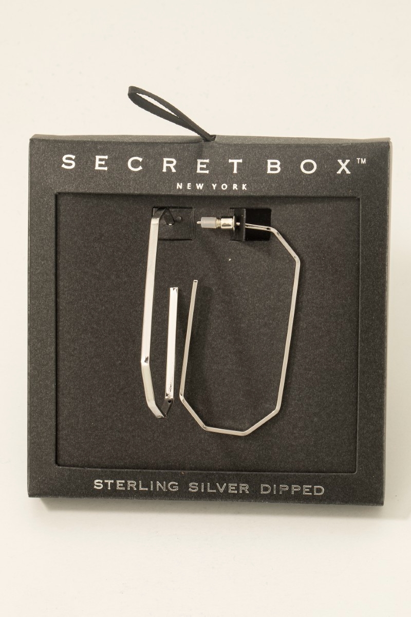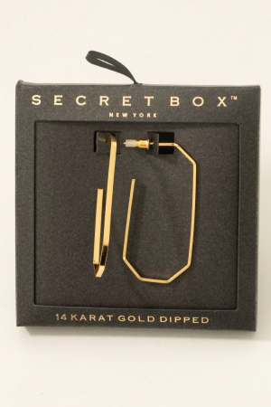 - This pair of hoop earrings brings a luxurious secret box gold dipped long oval style. Delight in the nuanced details that make this pair of hoop earrings a testament to fine design and impeccable taste.