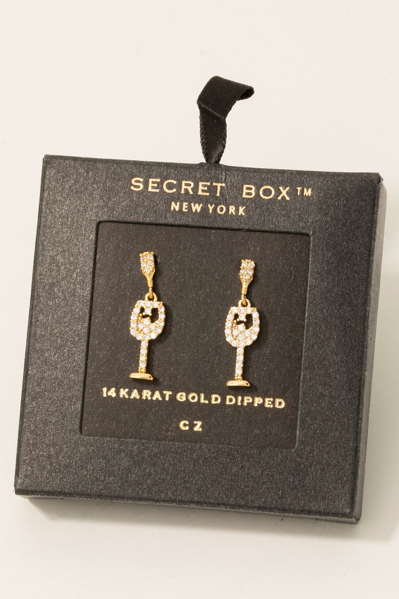 - This pair of stud earrings brings a luxurious secret box gold dipped secret box wine glass style. Explore a refined sense of style with this pair of stud earrings, seamlessly elevating the chic factor of your look.
