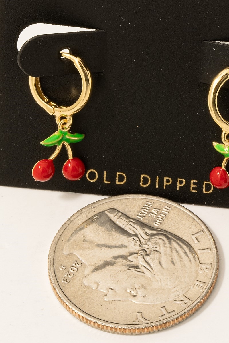 - This pair of hoop earrings introduces a stunning gold dipped epoxy cherry charms style. Explore a refined sense of style with this pair of hoop earrings, seamlessly elevating the chic factor of your look.