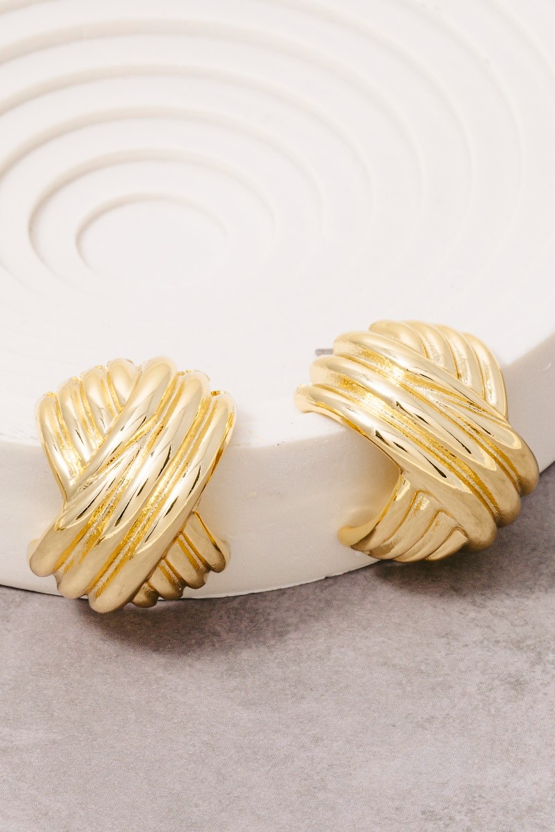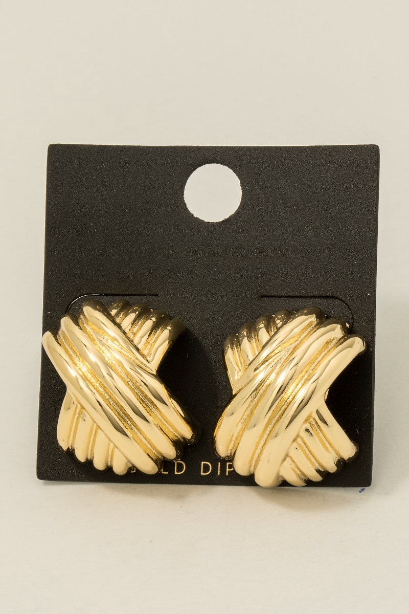 • This pair of hoop earrings brings a stunning gold dipped hash weave style. Embark on a journey of sartorial refinement as this pair of hoop earrings effortlessly complements your fashion sense.