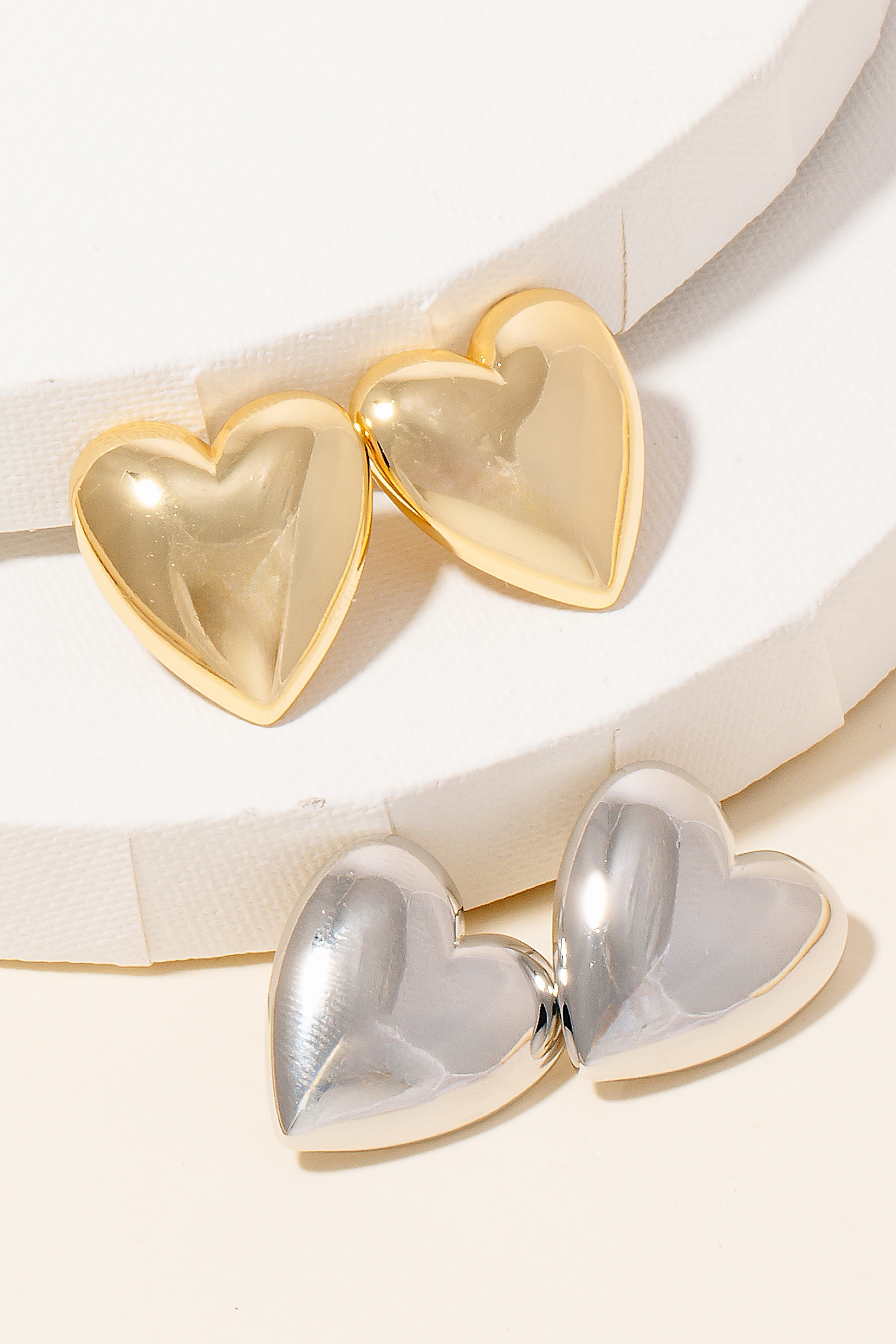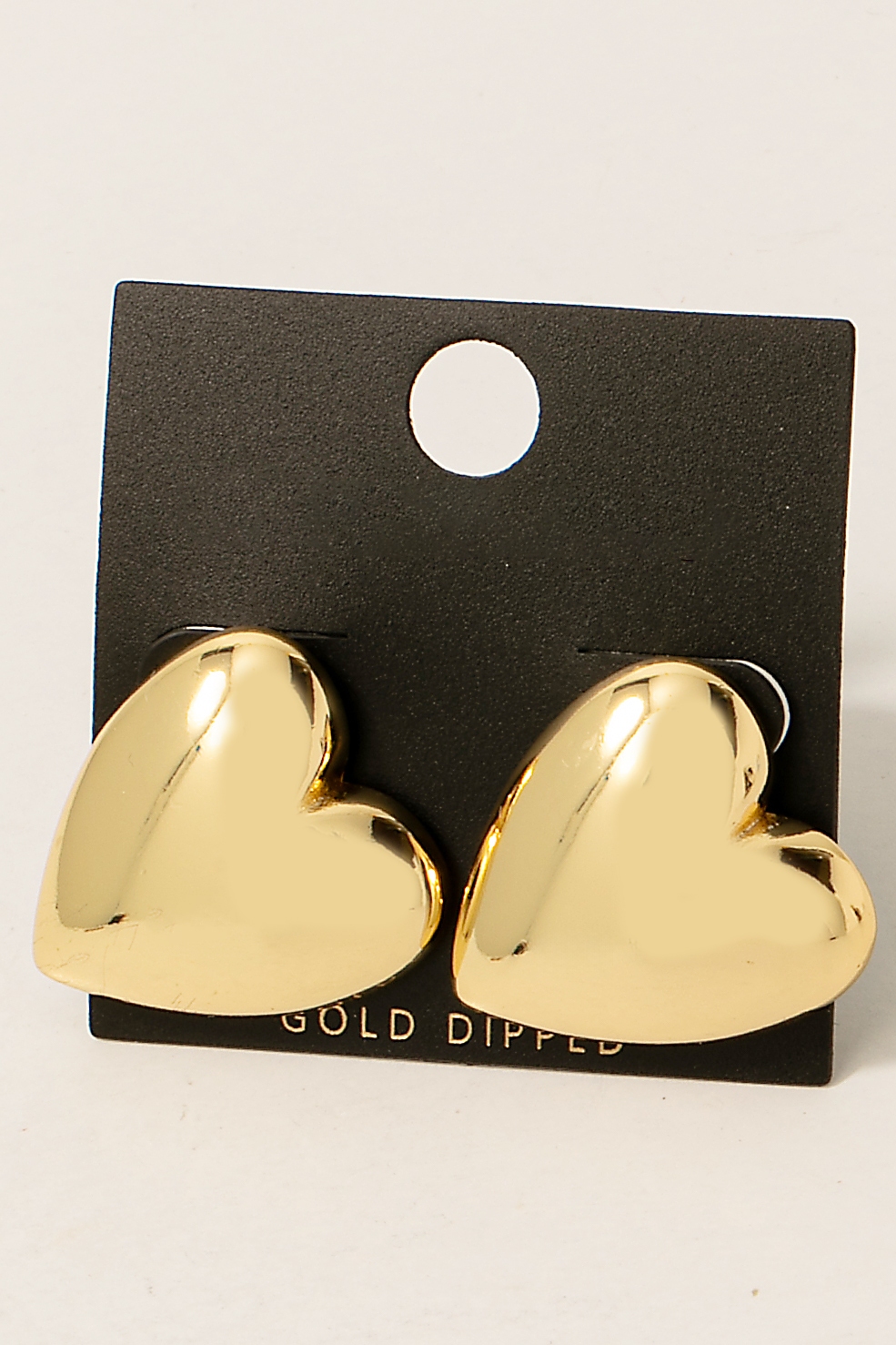 • This pair of stud earrings showcases a timeless gold dipped heart shield style. Immerse yourself in the details of design, as this pair of stud earrings effortlessly becomes a conversation starter.