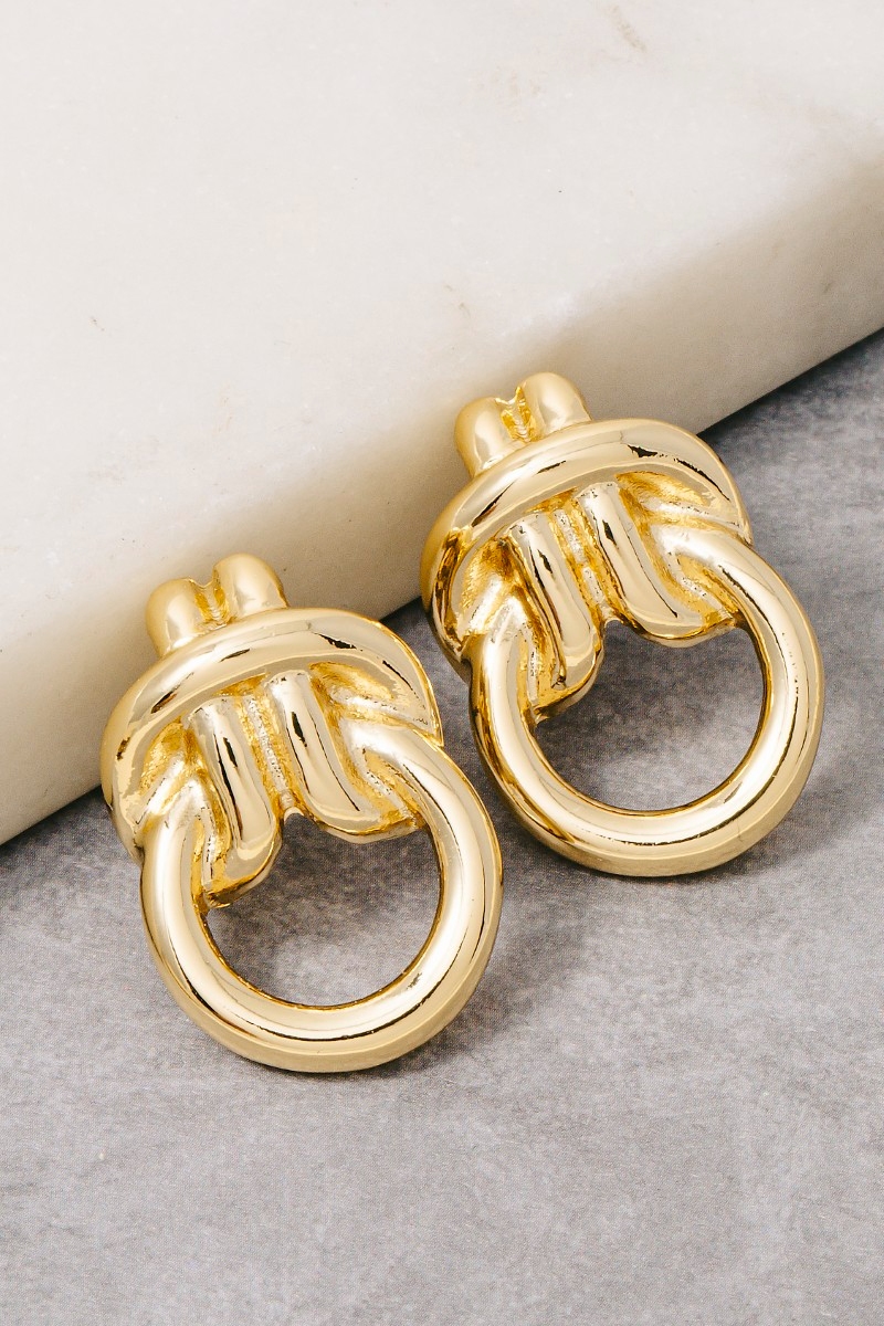 - This pair of drop earrings introduces a unique gold dipped intricate knot style. Unveil modern elegance with this subtly intricate pair of drop earrings.