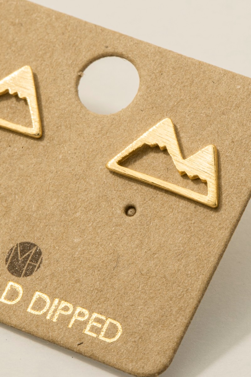 - This trending pair of earrings displays a vibrant gold dipped mini mountain cutout stud earrings style. Celebrate individual style with this versatile, eye-catching addition.