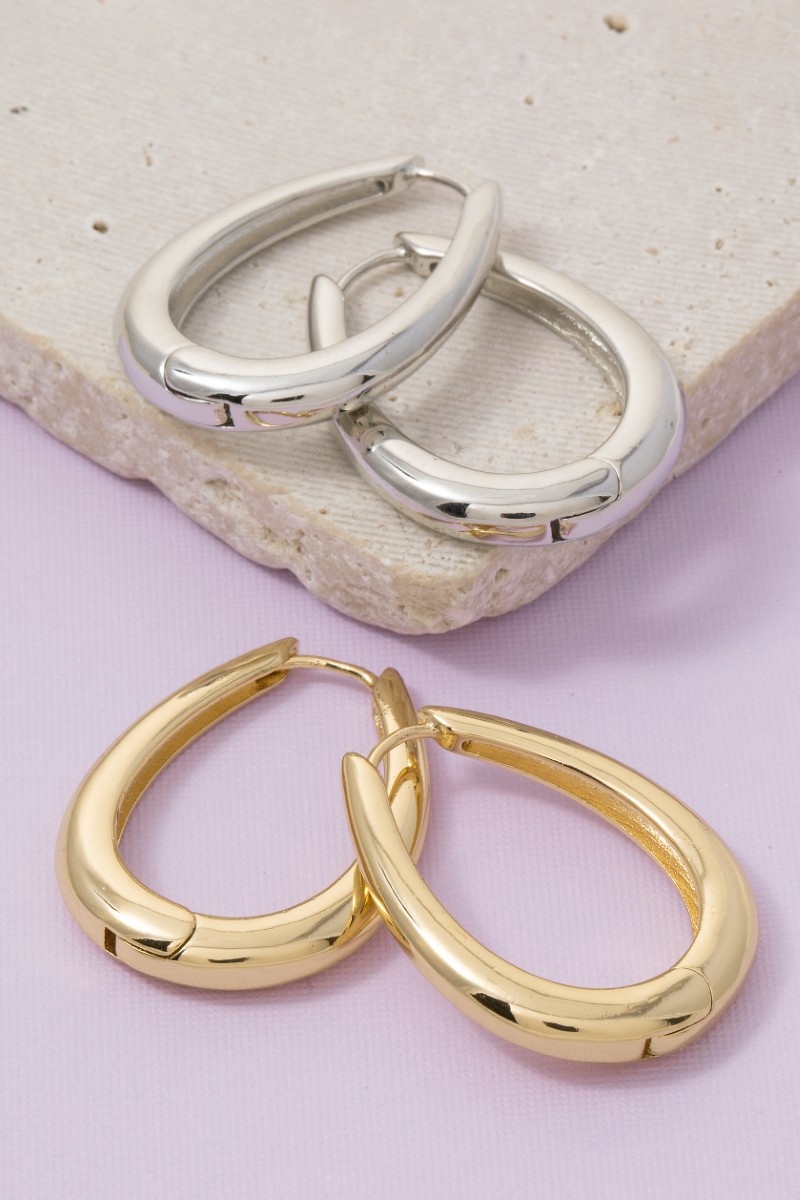 - This pair of hoop earrings brings a luxurious gold dipped oval hinge style. Unveil a new dimension of sophistication as this pair of hoop earrings effortlessly enhances the elegance of your ensemble.