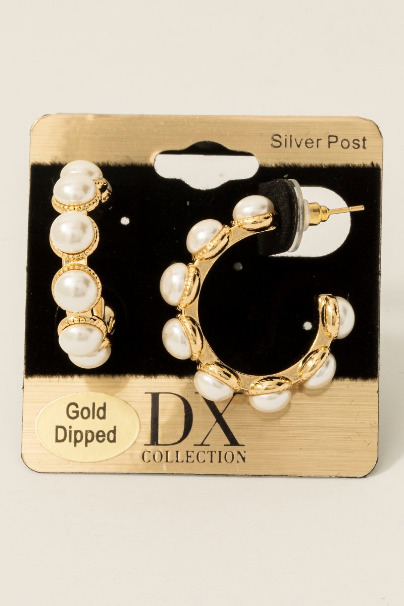 - This pair of hoop earrings introduces a stunning gold dipped pearl studded style. Step into a world of refined taste as this pair of hoop earrings effortlessly refines the details of your outfit.
