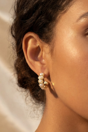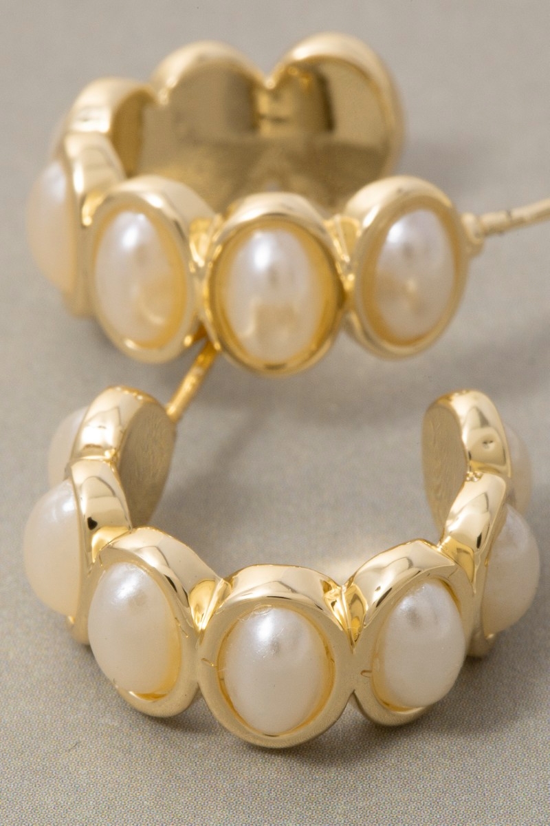 - This pair of hoop earrings brings a unique gold dipped pearl studded style. Experience a subtle blend of modernity and classic charm as this pair of hoop earrings effortlessly adorns your ensemble.