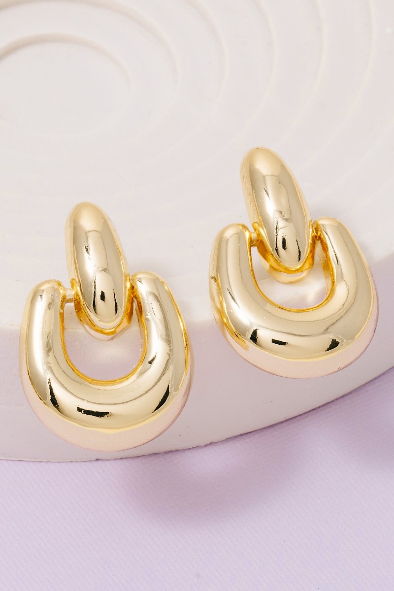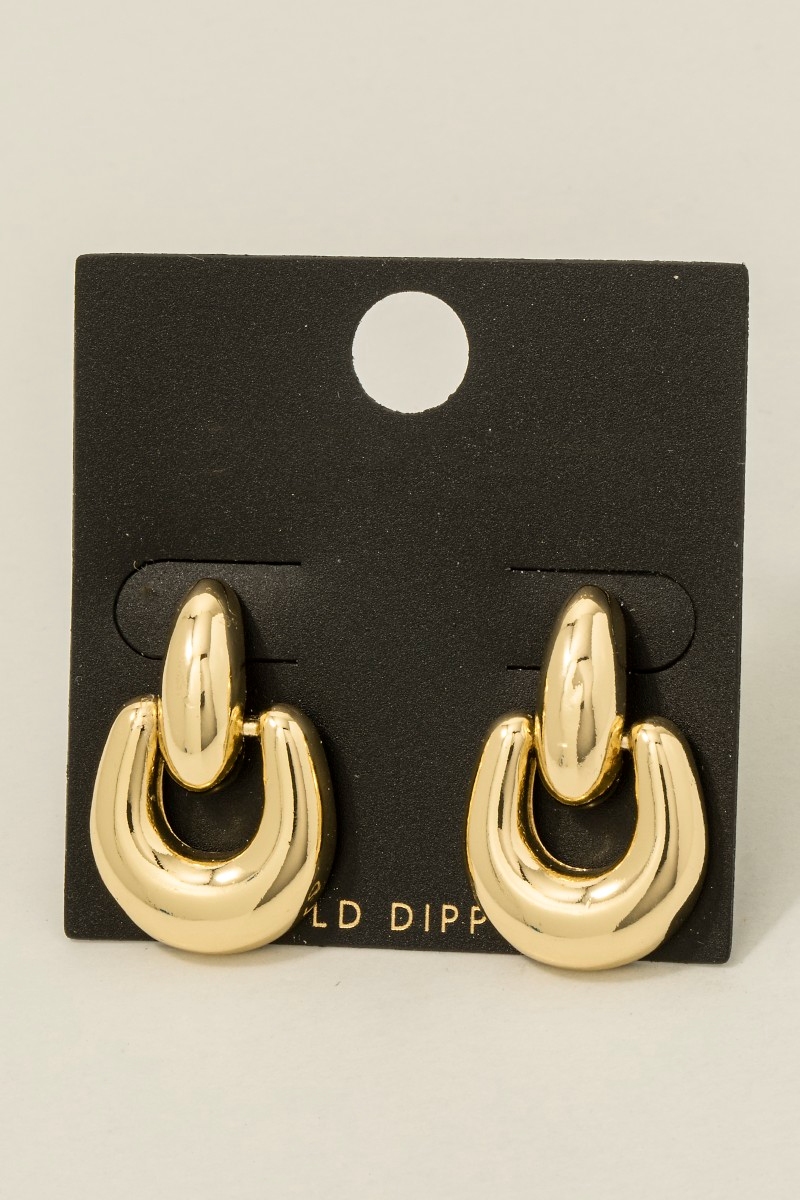 - This pair of earrings introduces a unique gold dipped rounded door knocker style. Witness the transformative power of accessories as this piece effortlessly redefines your fashion narrative.