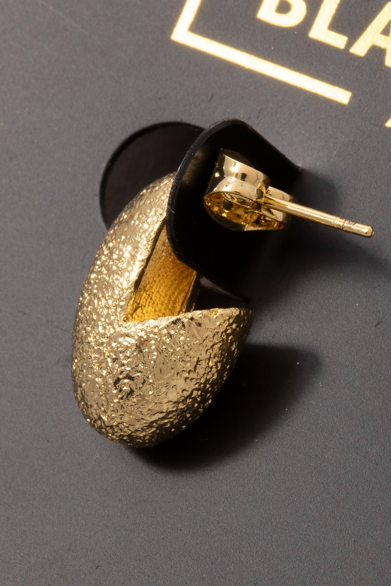 • This pair of gold dipped earrings displays a vibrant gold dipped small rough oval earrings style. Immerse yourself in fashion finesse with this statement pair of gold dipped earrings.