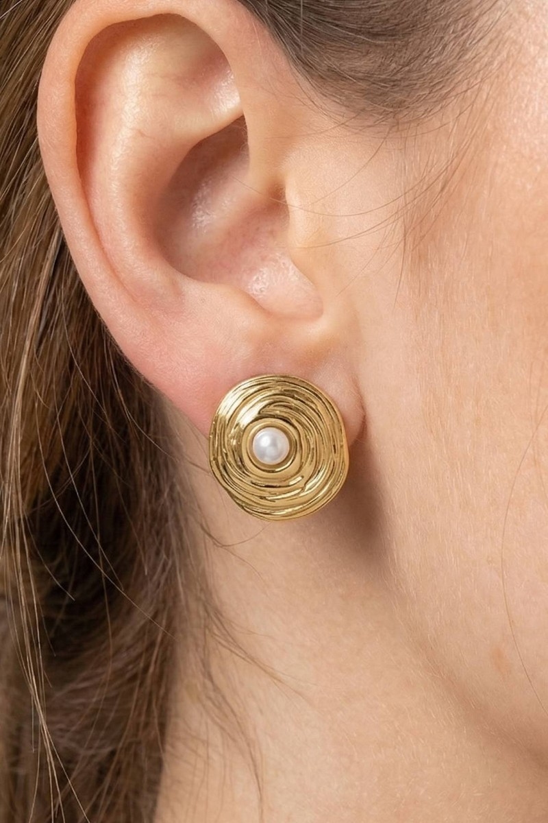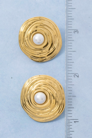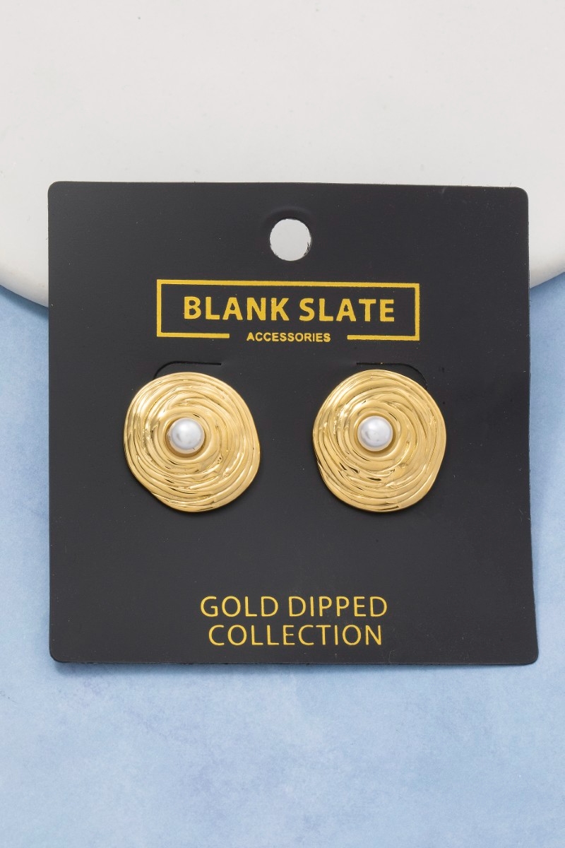 - This pair of stud earrings introduces a stunning gold dipped swirl disc pearl center style. Savor the allure of detailed craftsmanship in this exquisite pair of stud earrings.