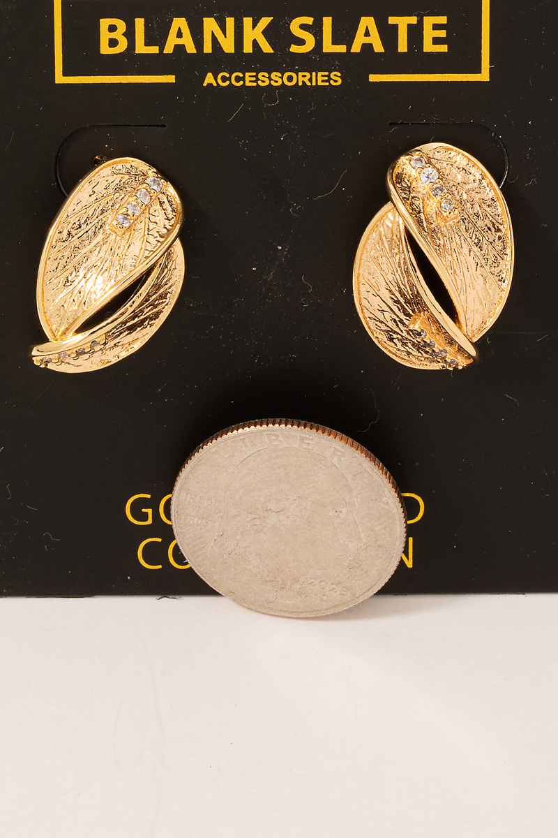 - This pair of earrings features a fashionable gold dipped textured double leaf style. Experience the joy of accessorizing with this piece that effortlessly combines versatility and charm.