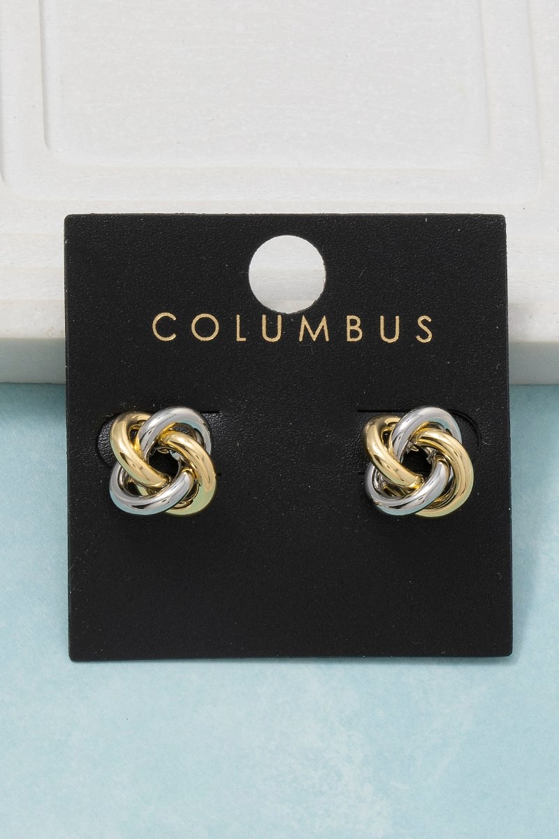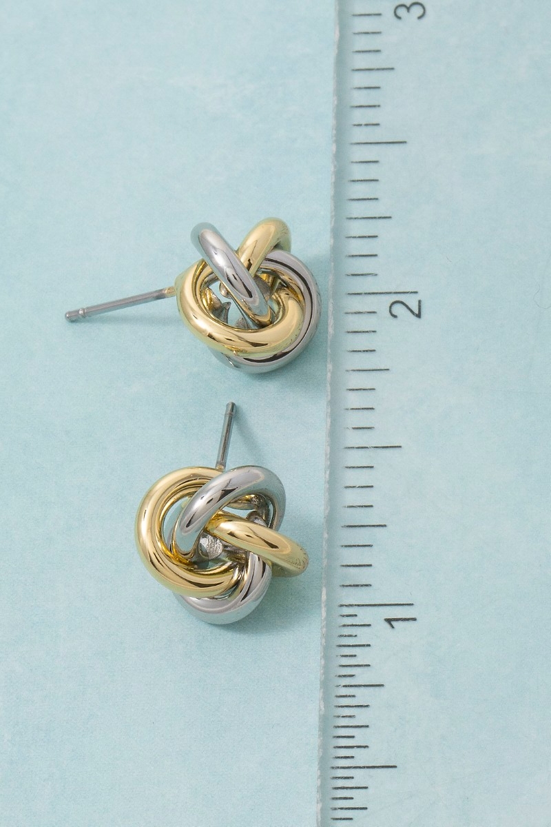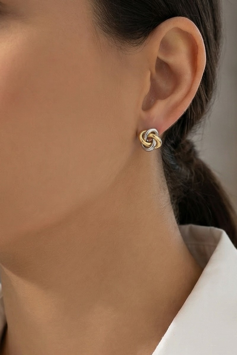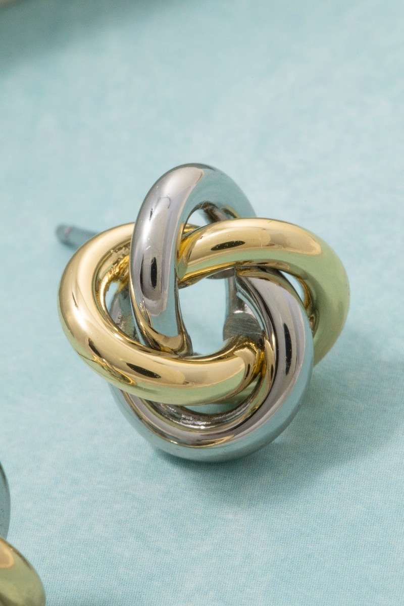 - This pair of stud earrings brings a luxurious gold dipped two tone knot style. Witness the transformative power of accessories as this piece effortlessly redefines your fashion narrative.