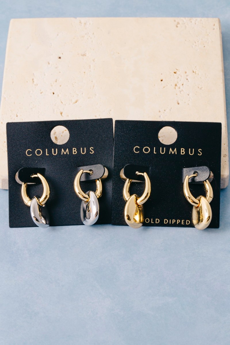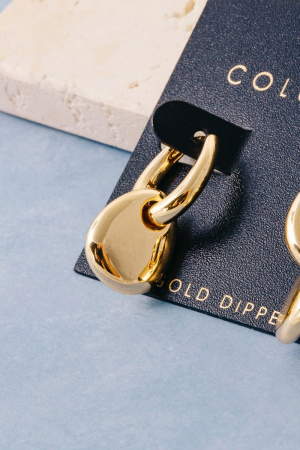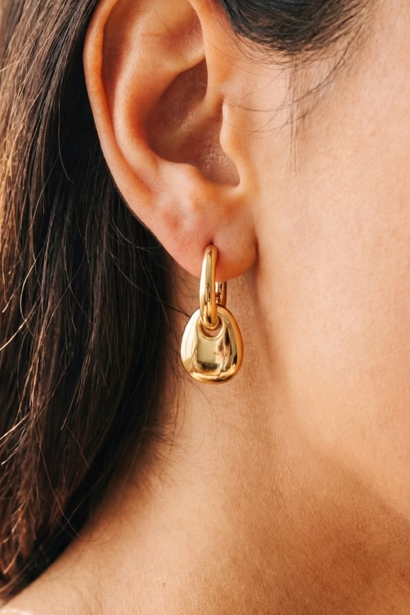 - This pair of earrings brings a luxurious gold dipped two-tone pebble charm huggie style. Immerse yourself in fashion finesse with this statement pair of earrings.