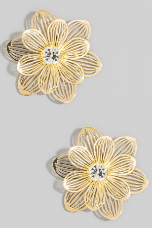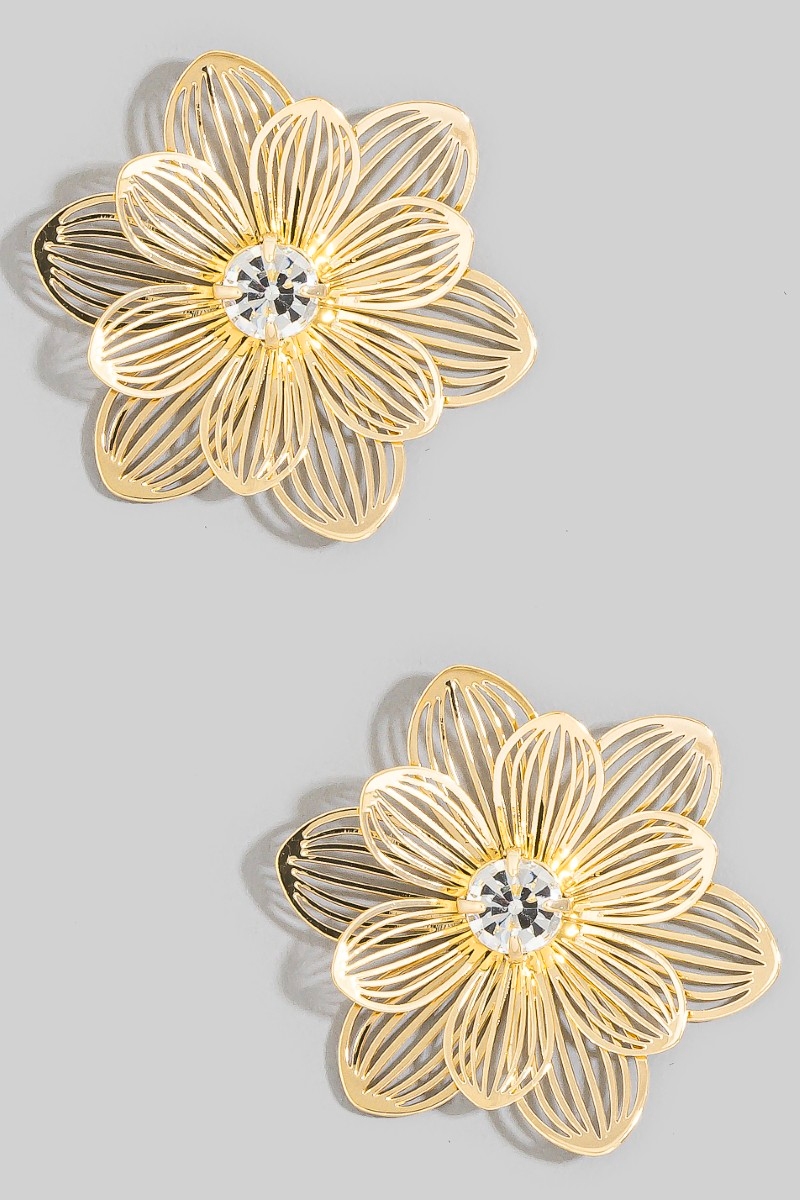 Gold Filigree Flower Cz Center Stud Earrings