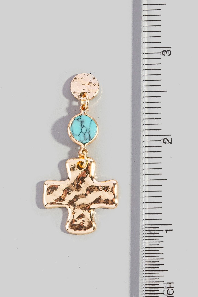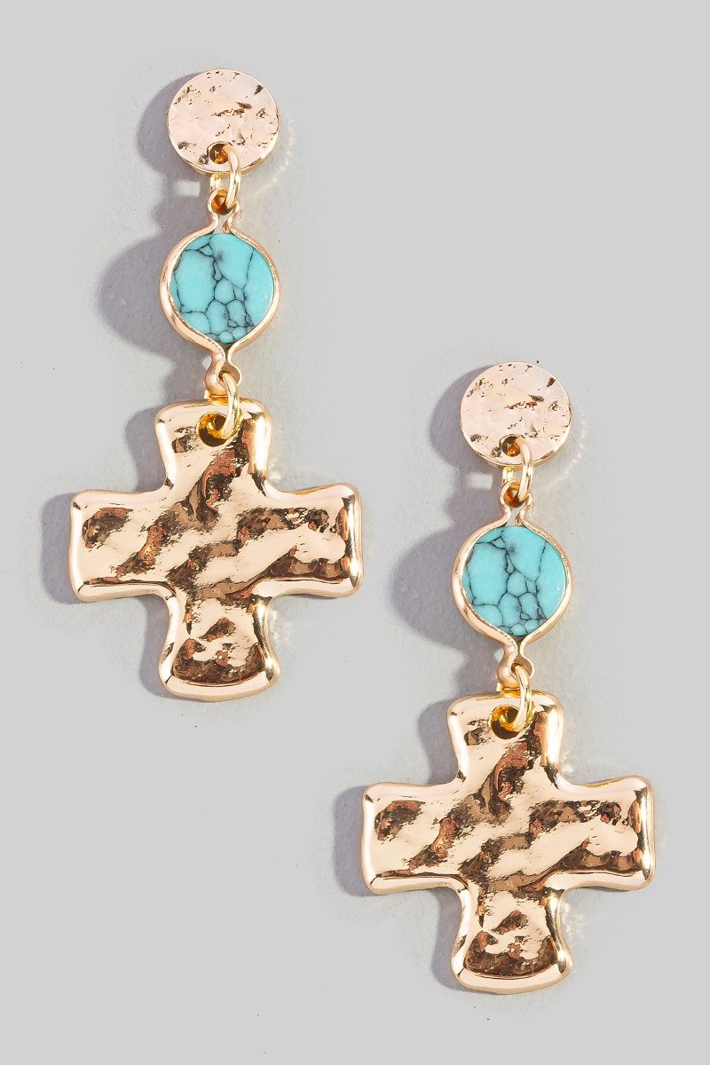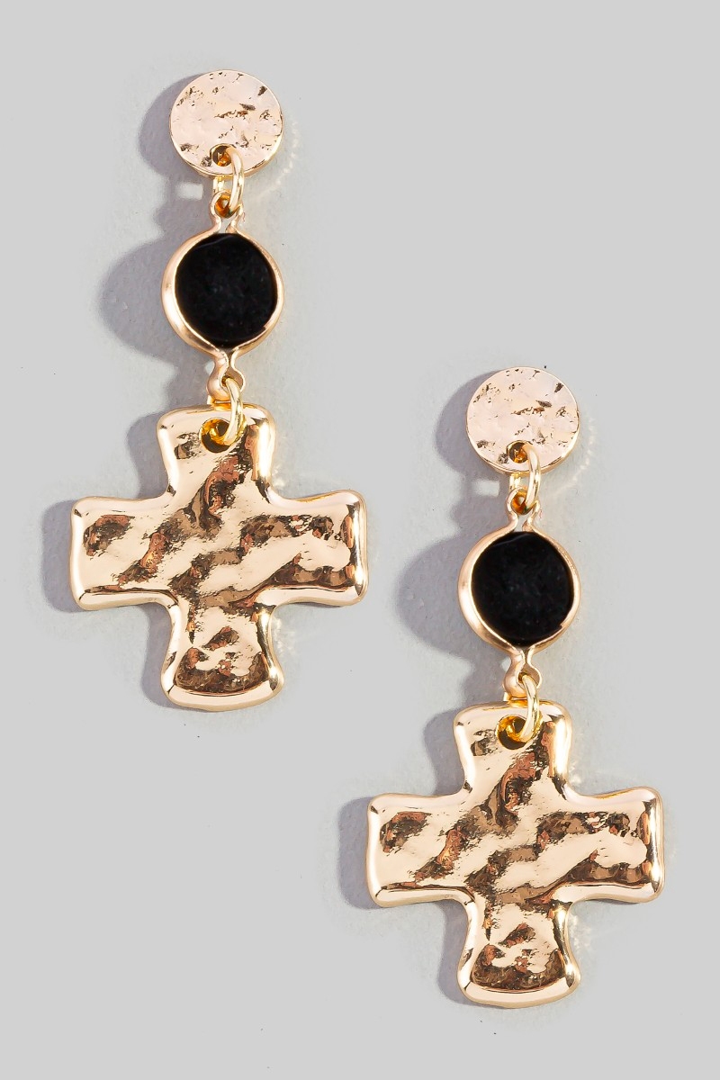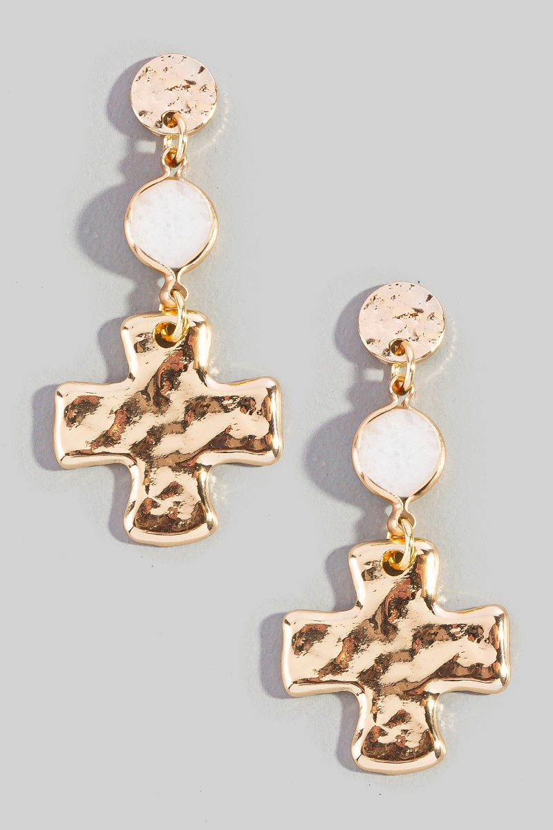 - This pair of earrings features a fashionable gold cross style. Delight in the nuanced details that make this pair of hoop earrings a testament to fine design and impeccable taste.