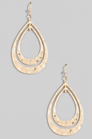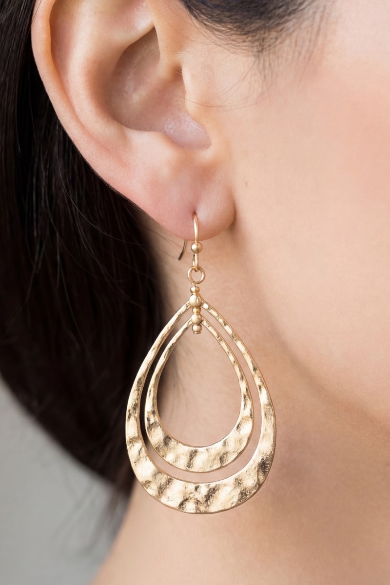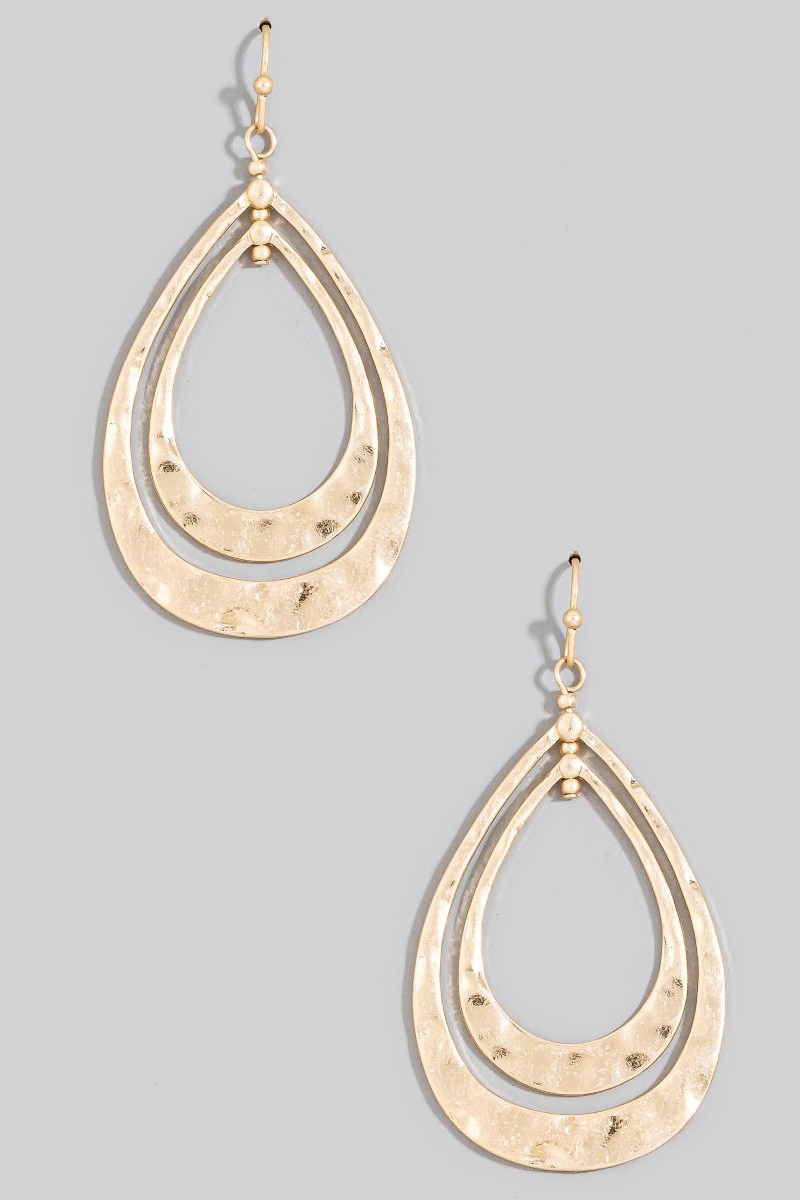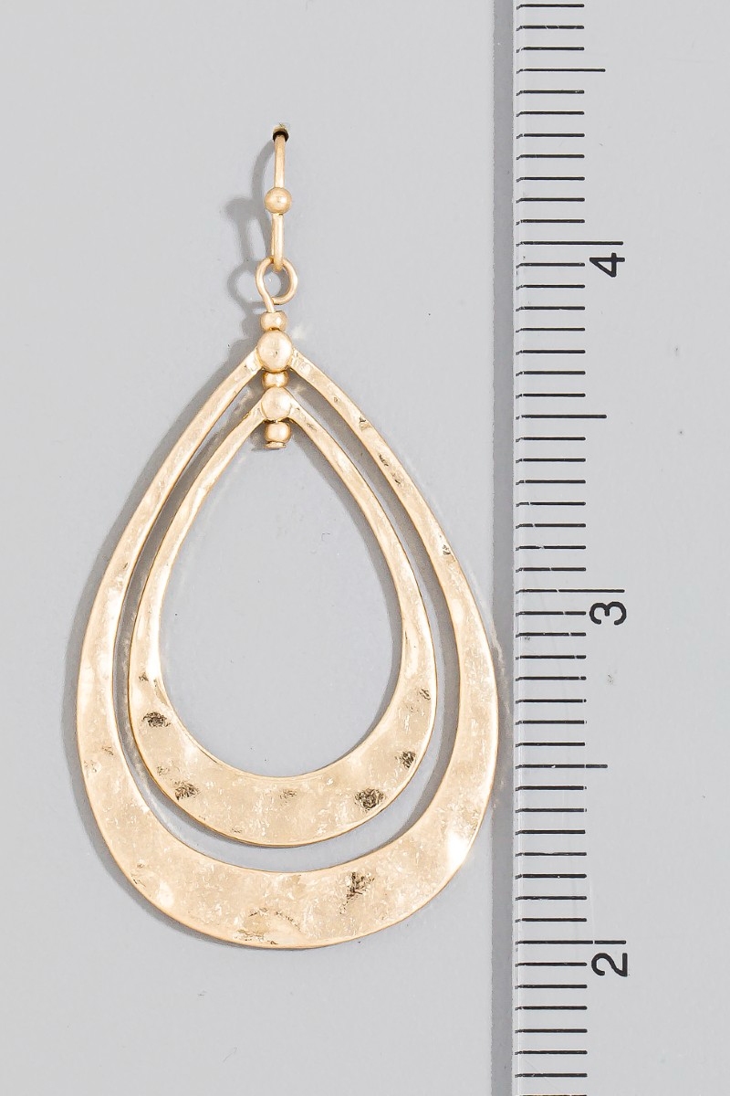 - This pair of dangle earrings brings a unique hammered double teardrop layered style. Discover the perfect balance of subtlety and flair as this pair of dangle earrings effortlessly completes your look.