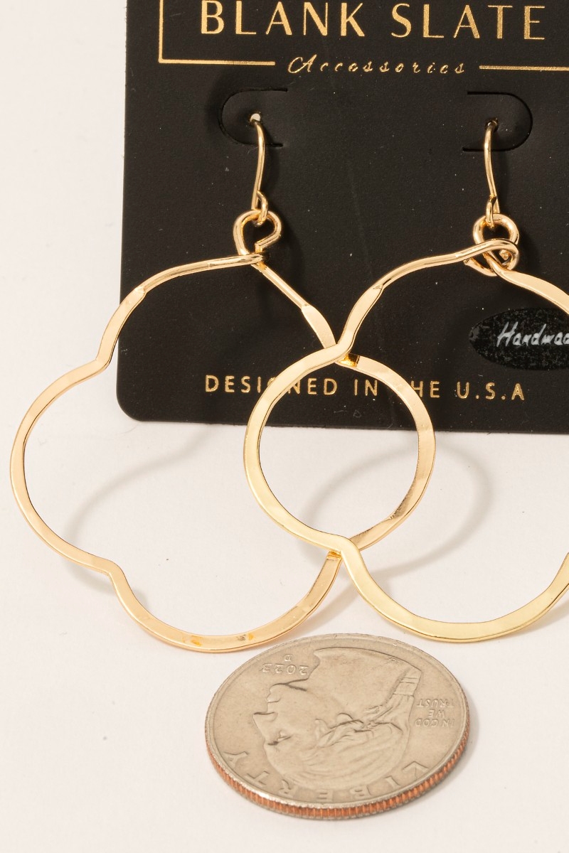 - This pair of drop earrings showcases a unique handmade clover cutout style. Savor the allure of detailed craftsmanship in this exquisite pair of drop earrings.