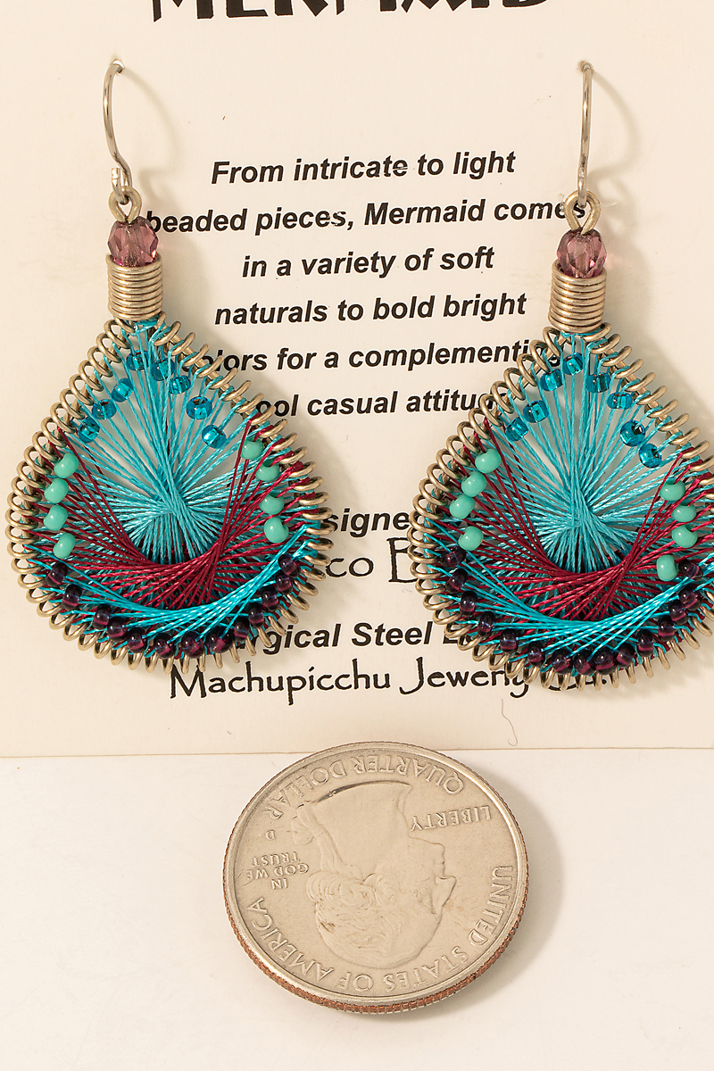 - This pair of drop earrings displays a vibrant handmade thread teardrop earrings style. Discover the perfect balance of functionality and fashion.
