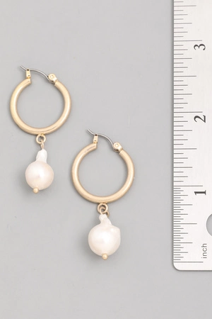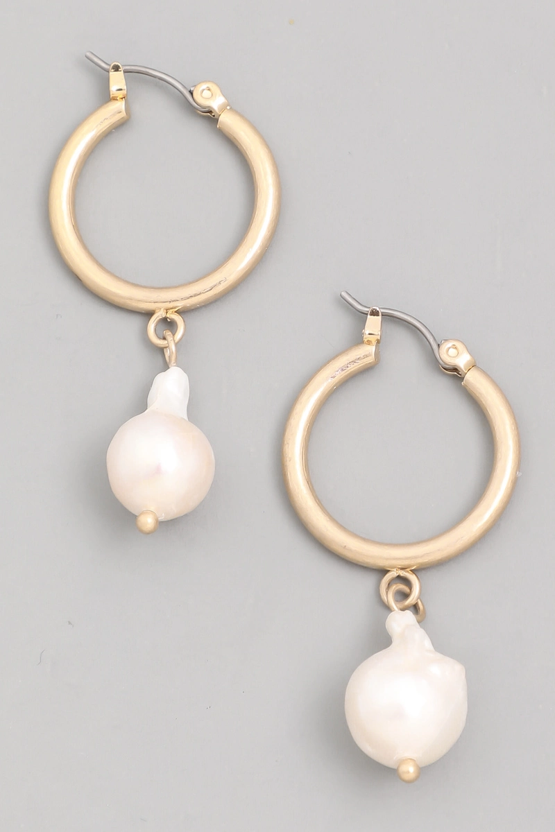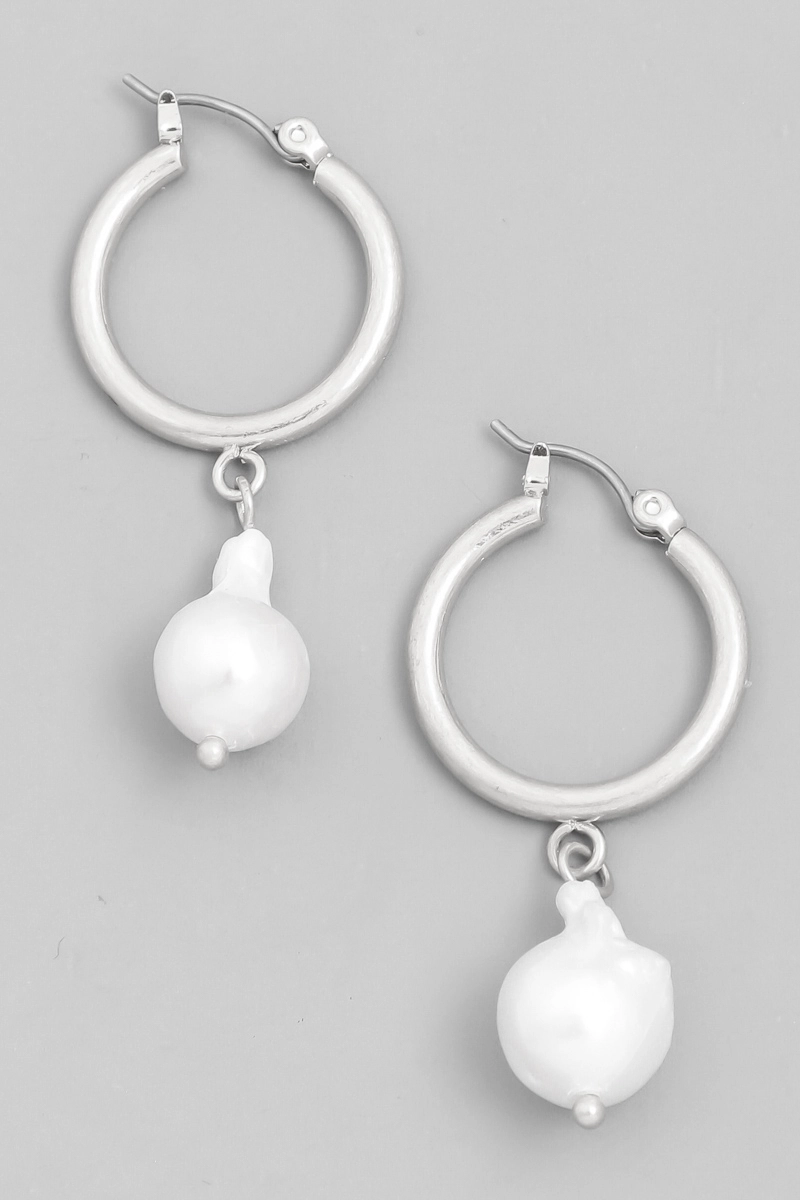 White Stone Scallop Stud Hammered Hoop Drop Earrings