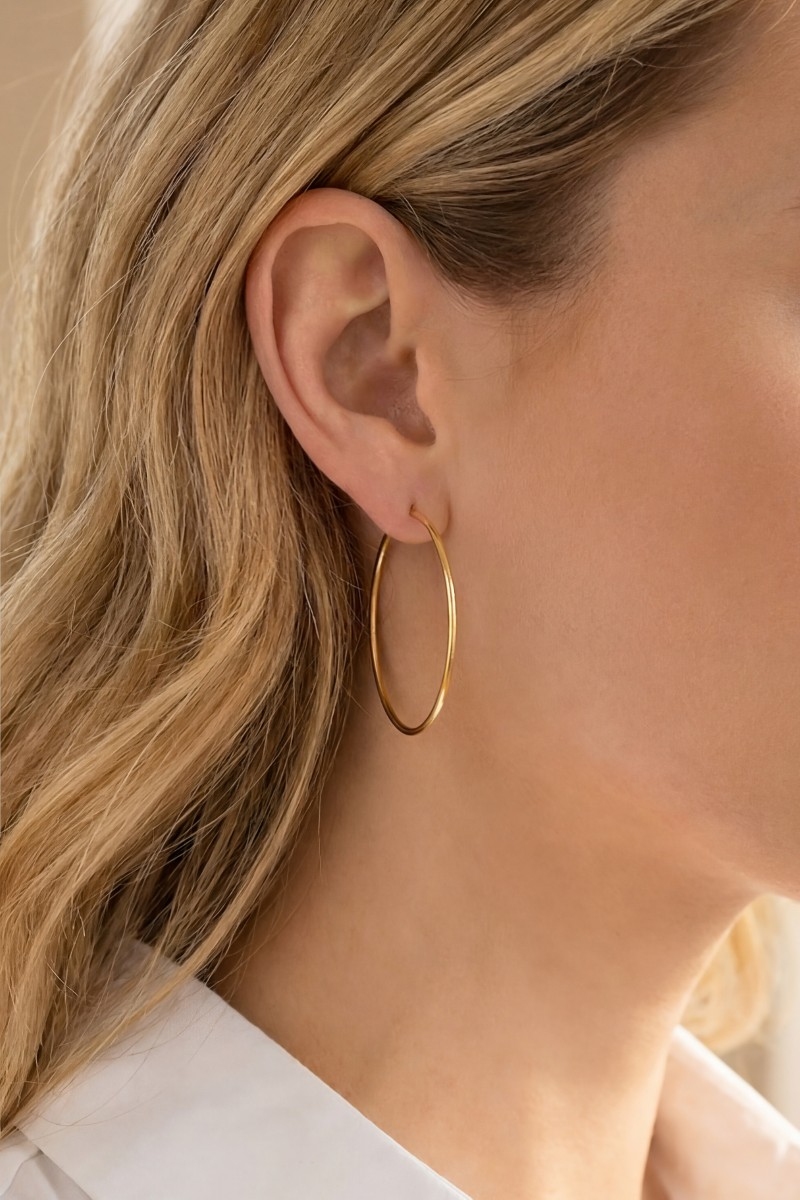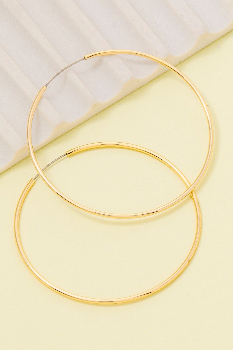 - This pair of hoop earrings adds a modern 40mm thin style. Redefine your look effortlessly with this standout, on-trend piece.