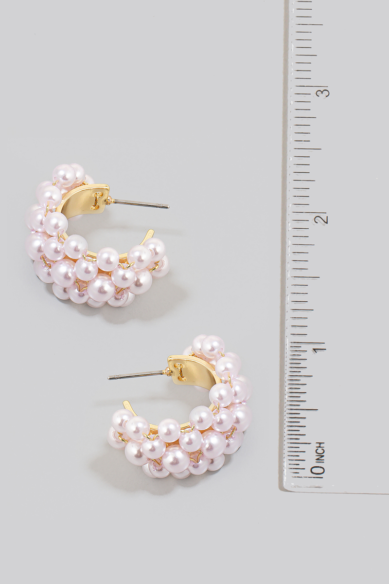 - This pair of hoop earrings adds a modern cluster pearl studded style. Revel in the intricate design that effortlessly distinguishes this pair of hoop earrings, making it a statement piece.