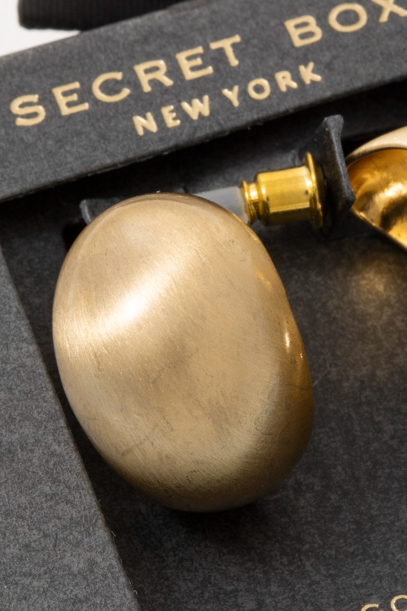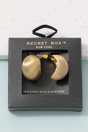 - This pair of hoop earrings introduces a unique secret box brushed gold dipped hollow sphere style. Experience a subtle blend of modernity and classic charm as this pair of hoop earrings effortlessly adorns your ensemble.