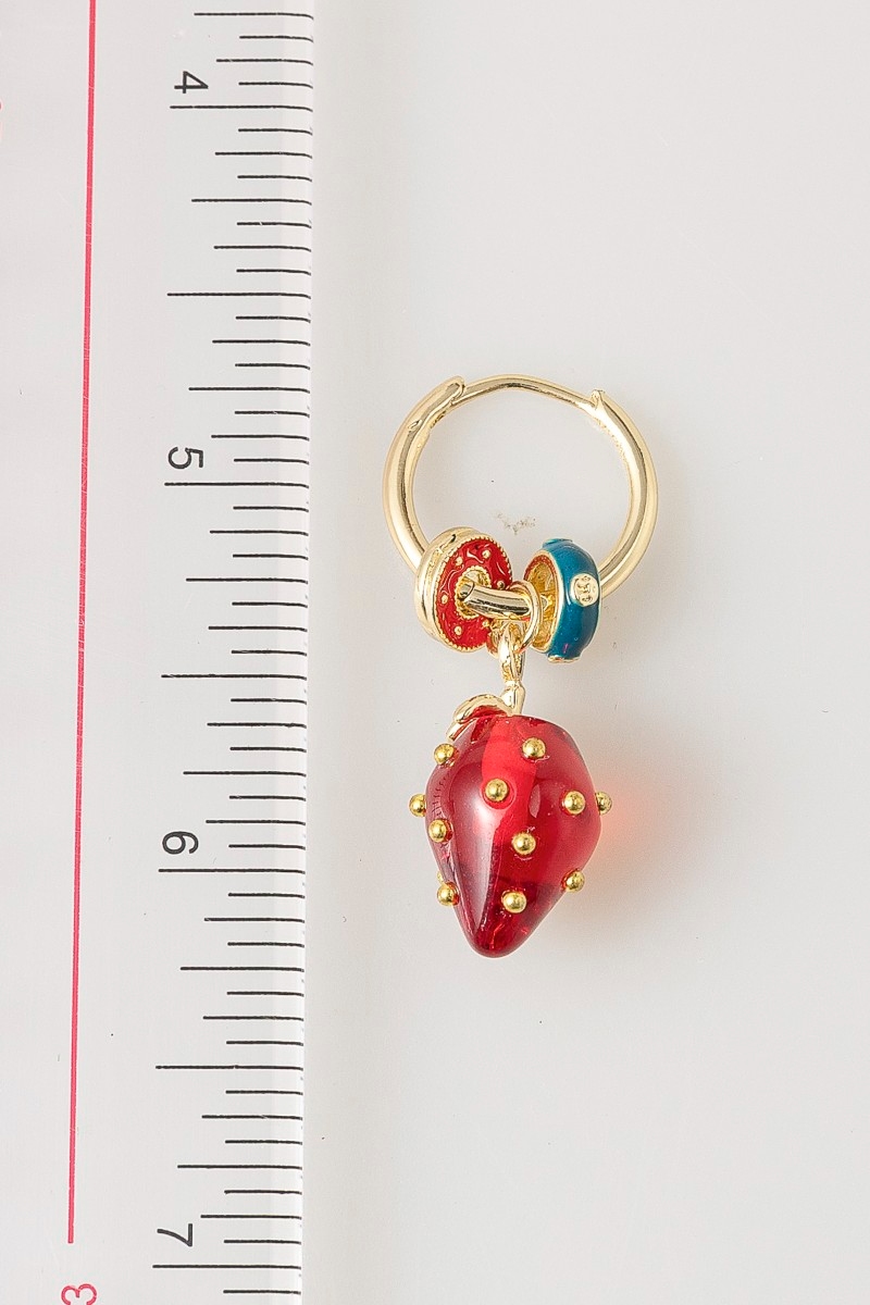 - This pair of hoop earrings introduces a unique strawberry and ring charms style. Celebrate the art of accessorizing with this piece that effortlessly encapsulates modern trends.