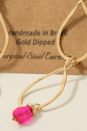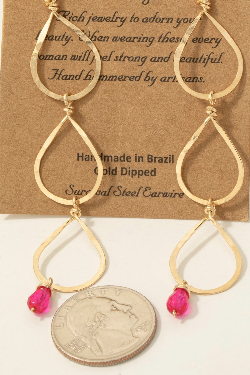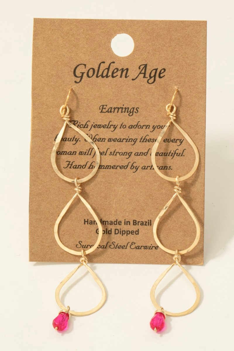 • This pair of dangle earrings brings a stunning hot pink gem charm triple teardrop style. Step into a world of refined taste as this pair of dangle earrings effortlessly refines the details of your outfit.