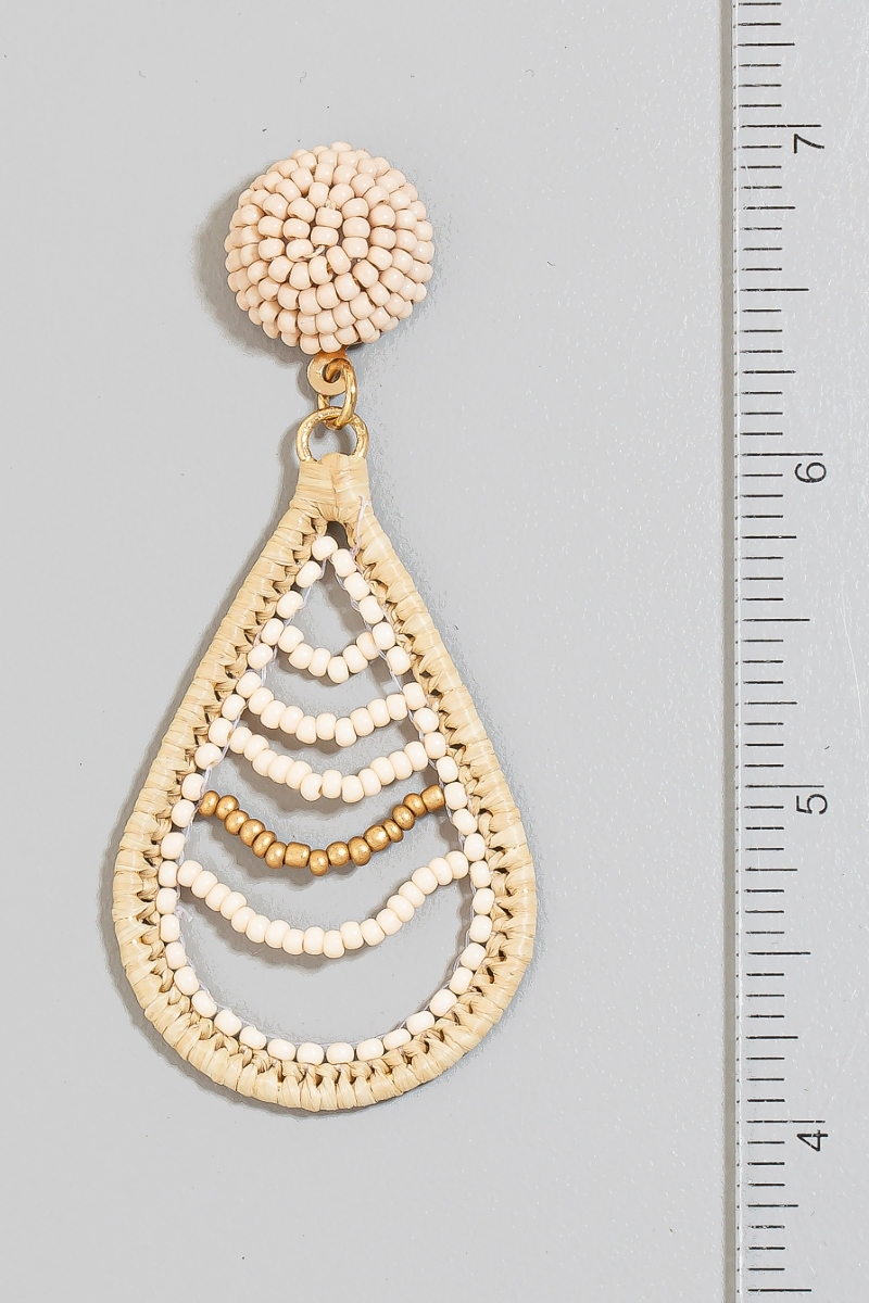 - This pair of dangle earrings showcases a timeless intricate beaded tear style. Witness the transformative power of accessories as this piece effortlessly redefines your fashion narrative.