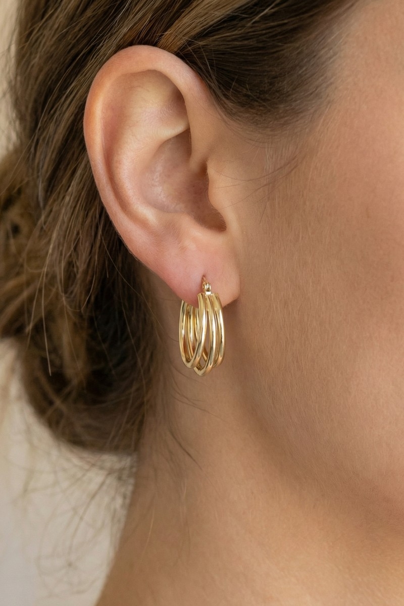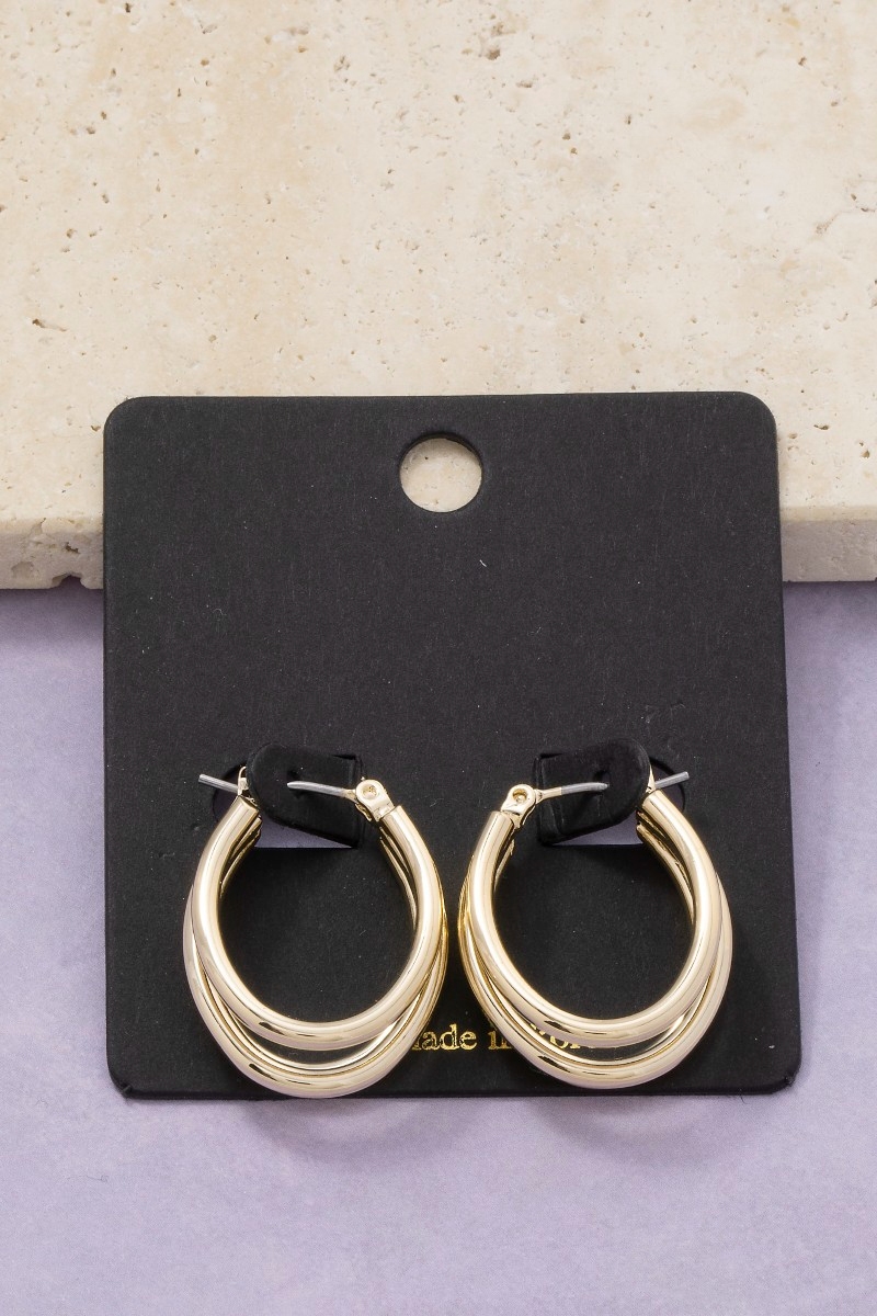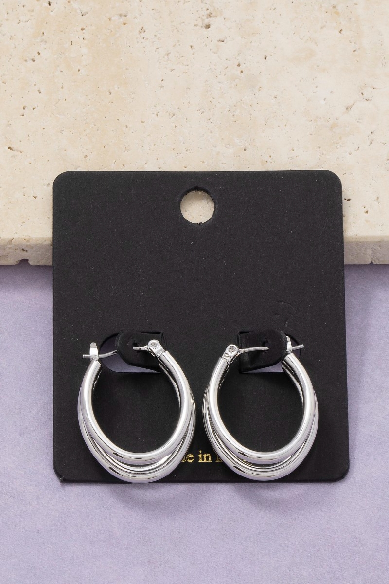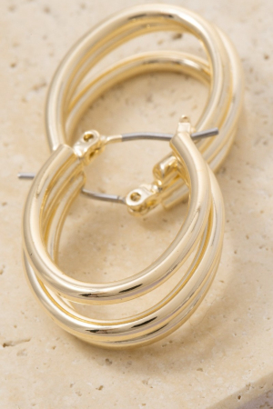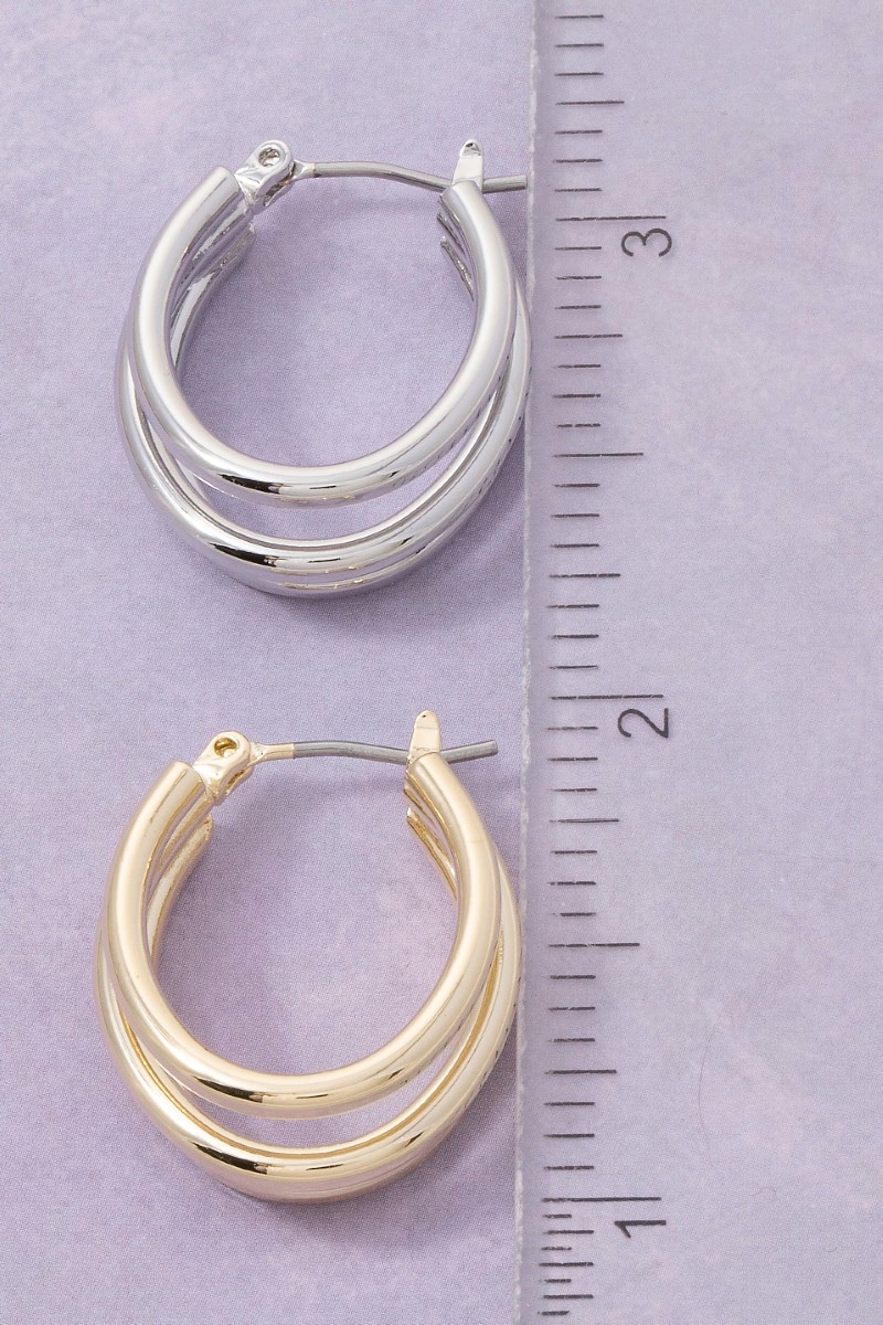 • This pair of hoop earrings showcases a unique layered ovals latch style. Delight in the nuanced details that make this pair of hoop earrings a testament to fine design and impeccable taste.