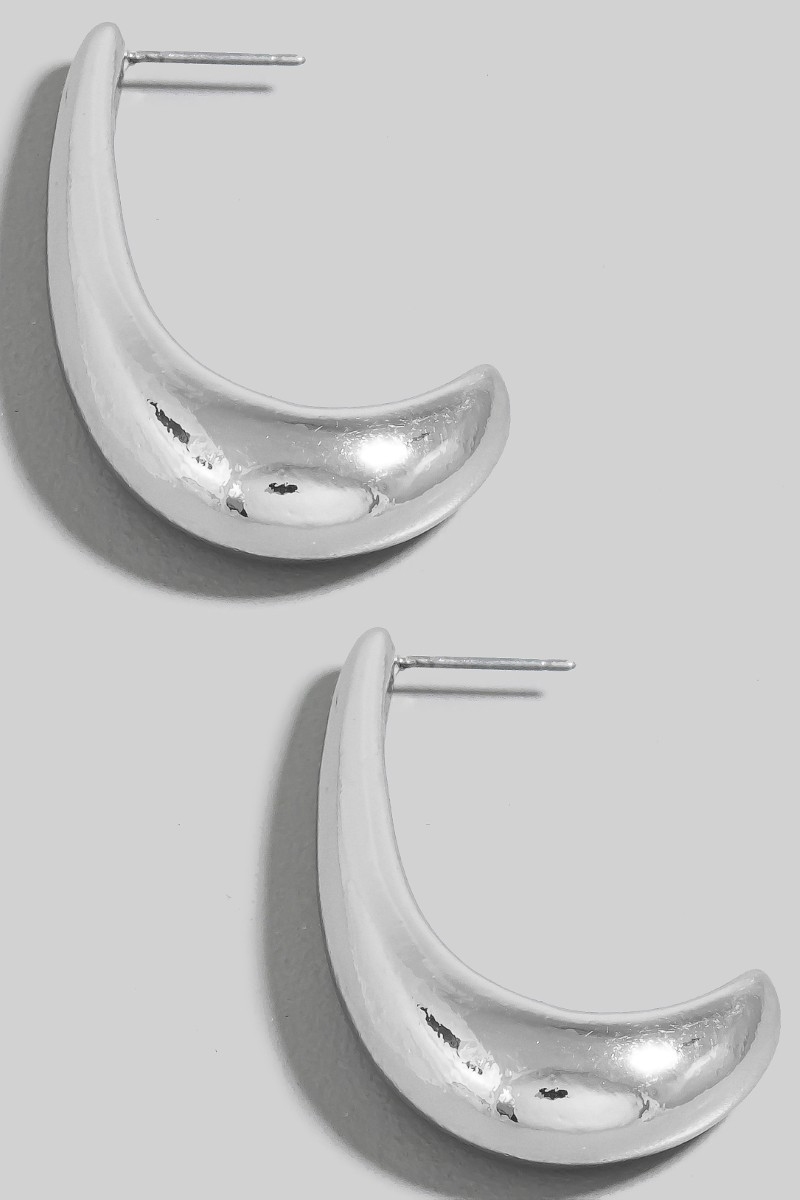 - This pair of hoop earrings showcases a timeless long metallic j style. Discover the perfect balance of subtlety and flair as this pair of hoop earrings effortlessly completes your look.